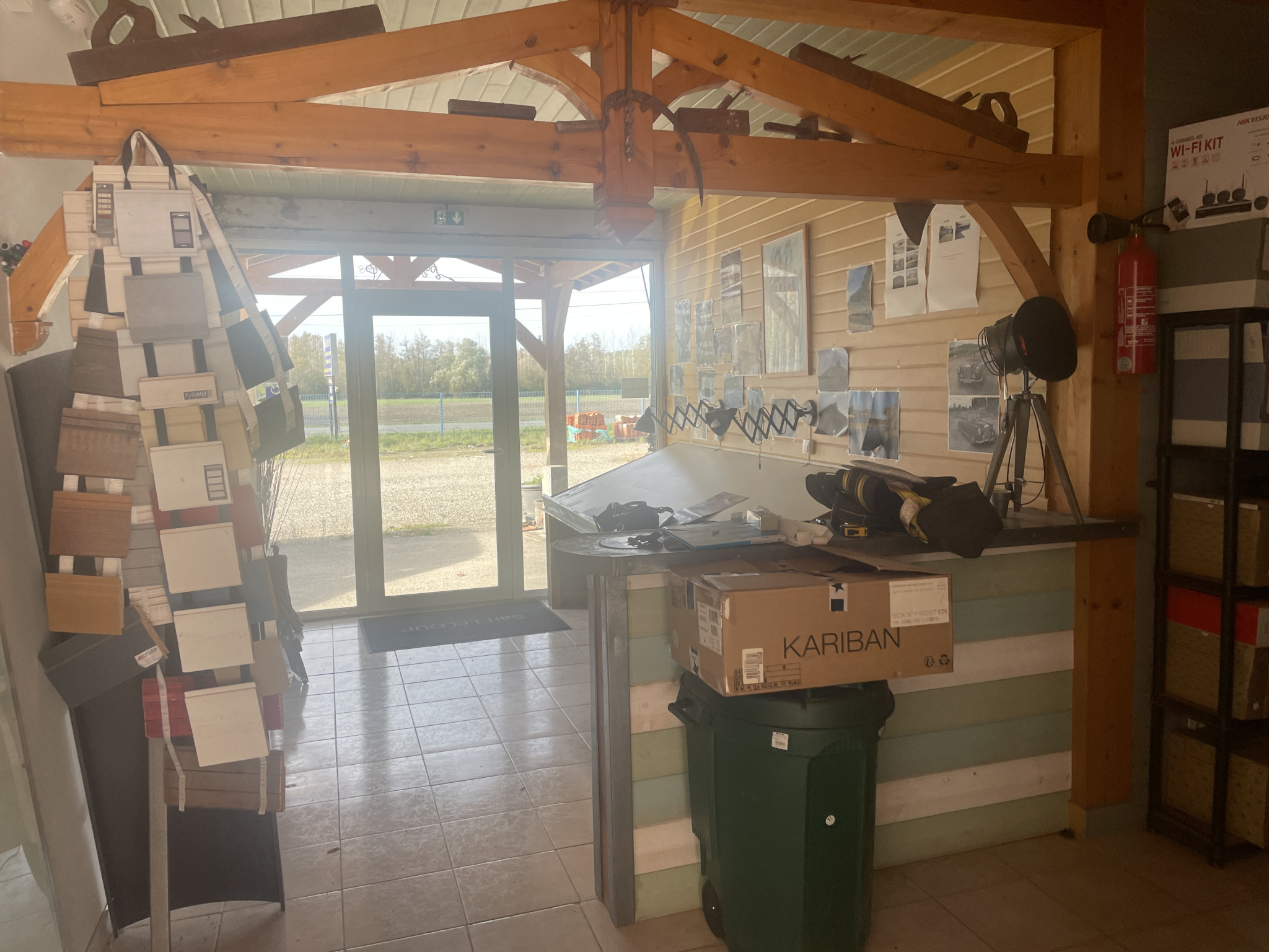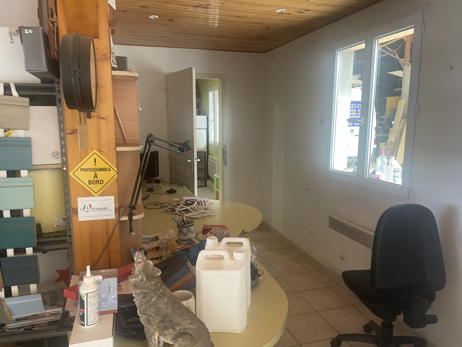 Le batiment se compose d'une entrée, trois bureaux, une cuisine, une réserve, une salle d'eau et deux WC.