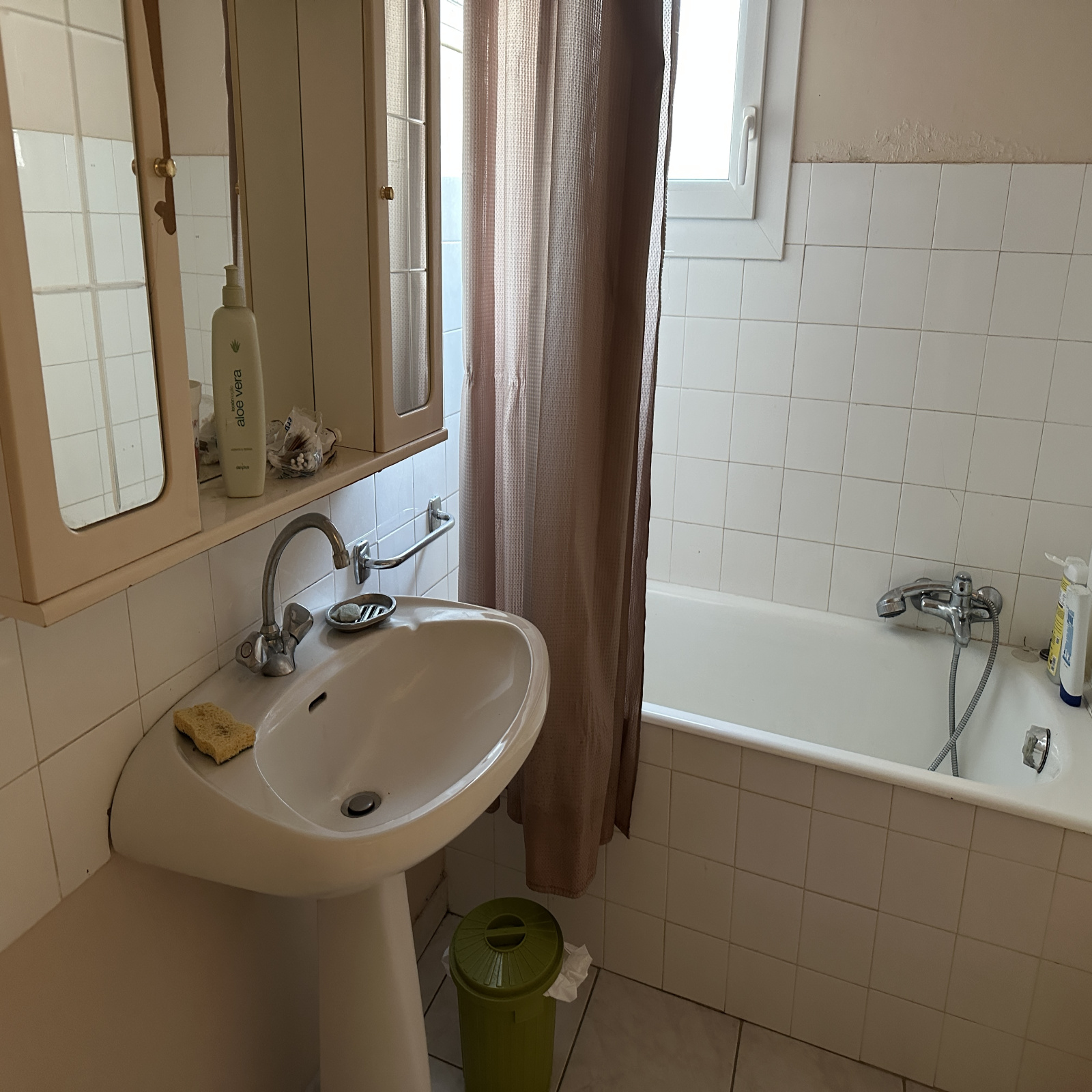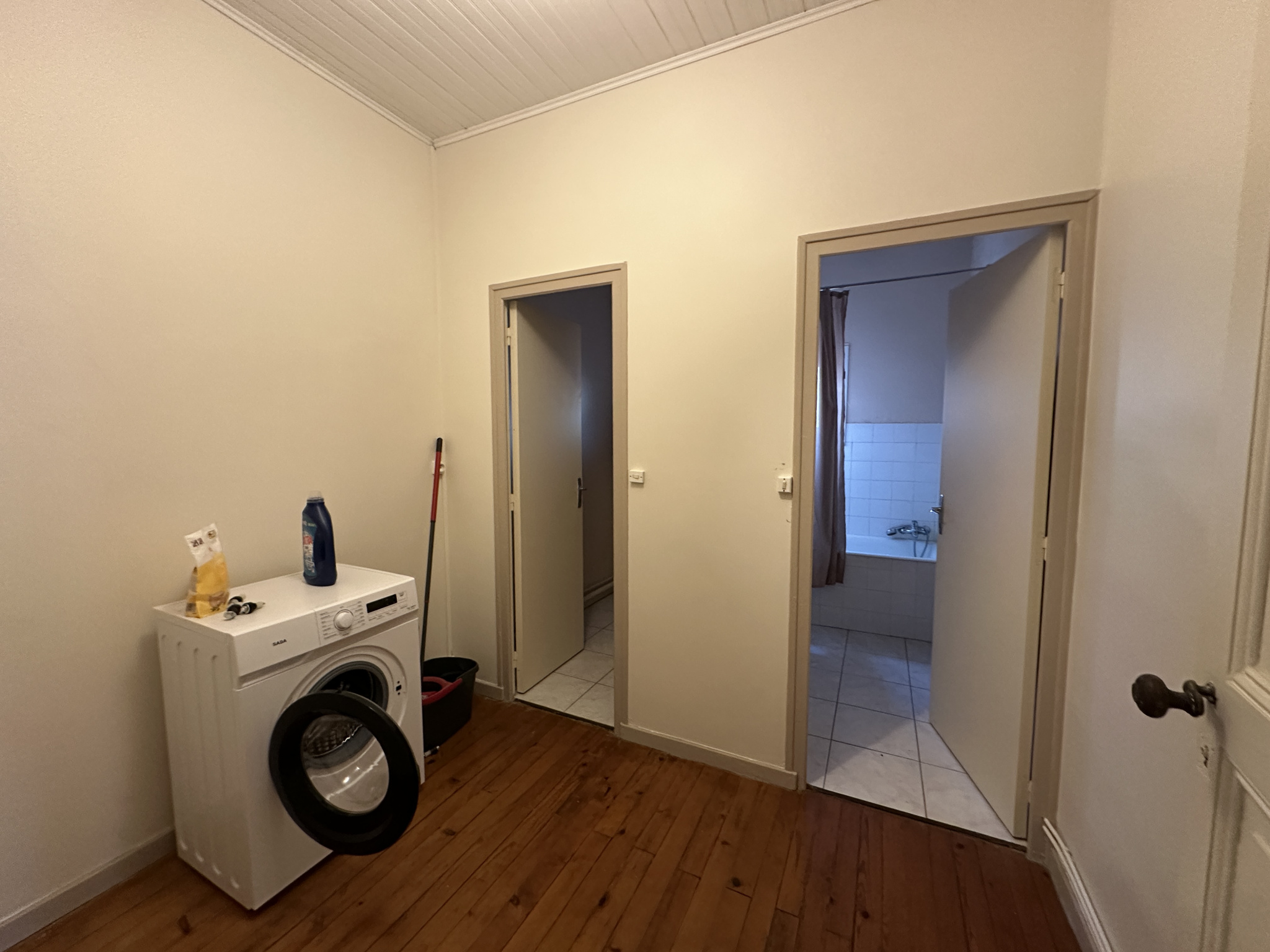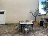 Maison en location composée d'une entrée au rez de chaussée desservant une chambre avec salle de bains et WC, un salon et une cuisine équipée. Au premier étage, un dégagement ouvrant sur une buanderie avec salle de bains et WC et deux chambres dont l'une avec dressing.Une grande terrase de 50 m2, un vaste garage de 35 m2 et une cave.