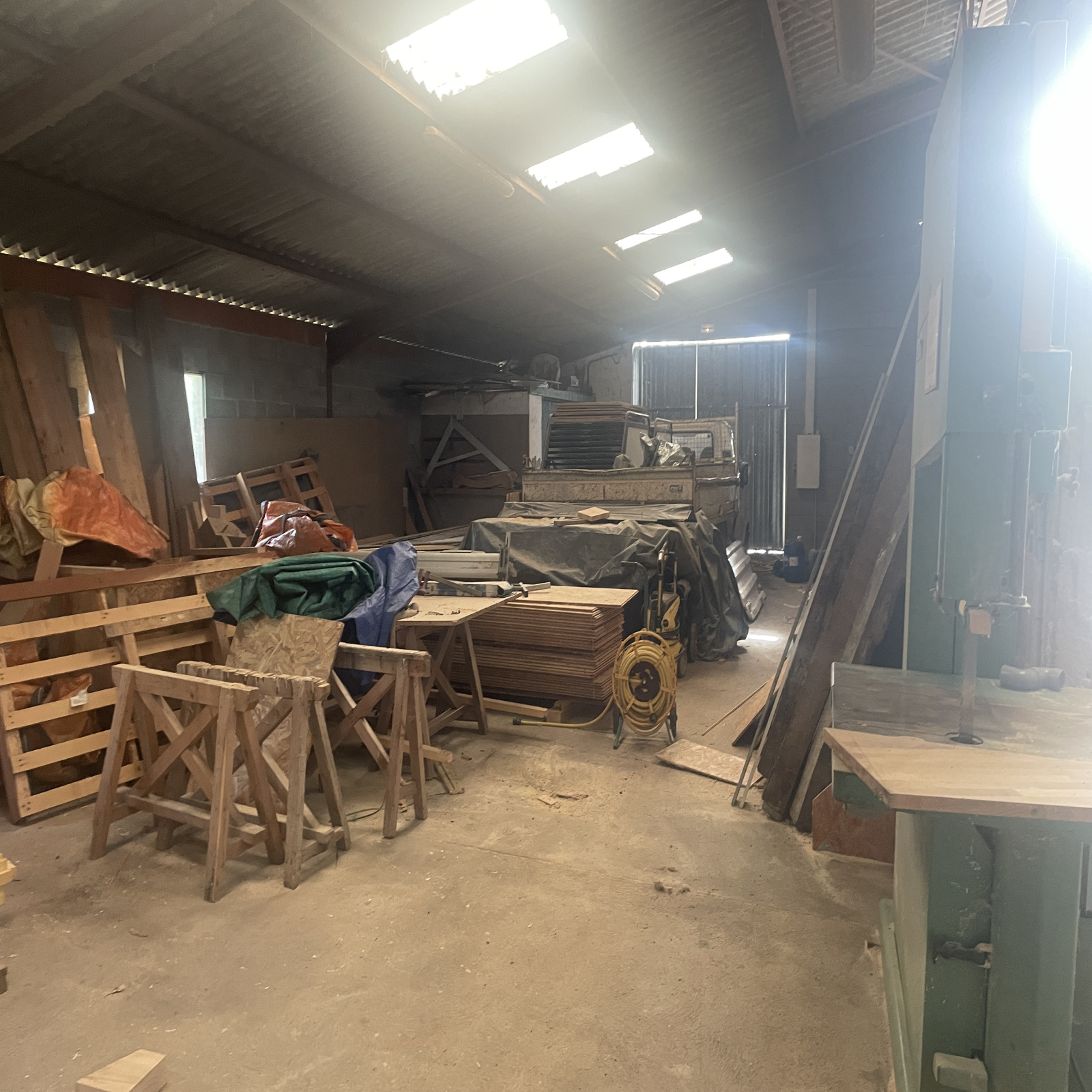 AXE CASTELJALOUX-MARMANDE en 1ere ligne BATIMENT INDUSTRIEL ET COMMERCIAL de 745m² avec un hall d'entrée, trois bureaux, une cuisine, deux WC, une salle d'eau, un grand atelier, parking sur le devant et portail électrique sur un terrain de 8385m².. Actuellement libre de tout location.
