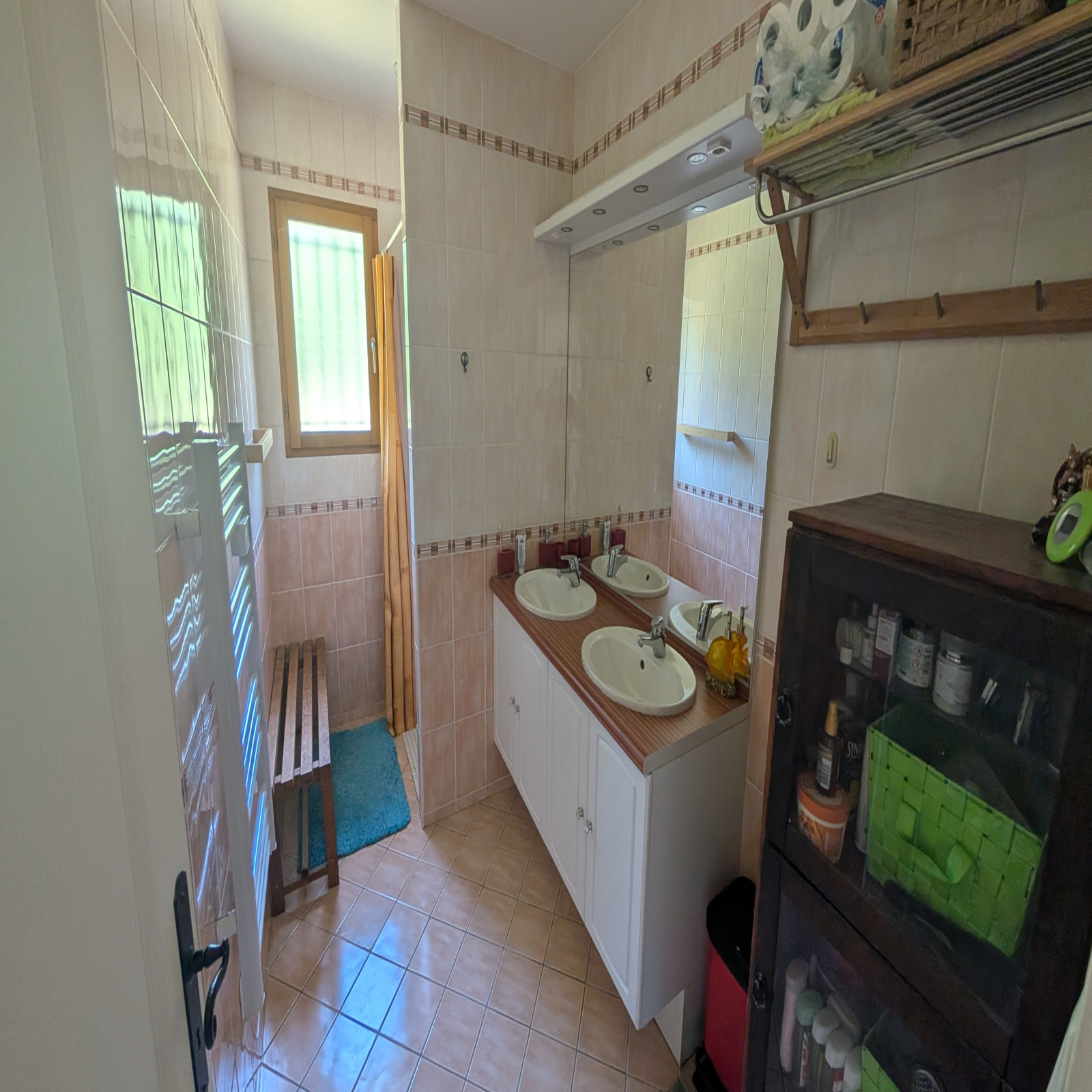 MAISON de plain-pied composée d'une grande pièce de vie avec sa cuisine, dégagement desservant 3 chambres, une salle d'eau, un WC, un garage. Sur un magnifique parc arboré de 5000m² au calme .