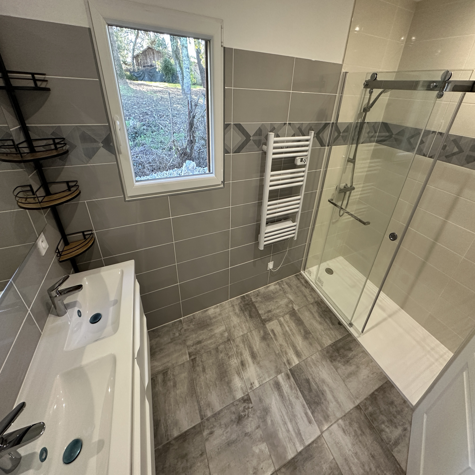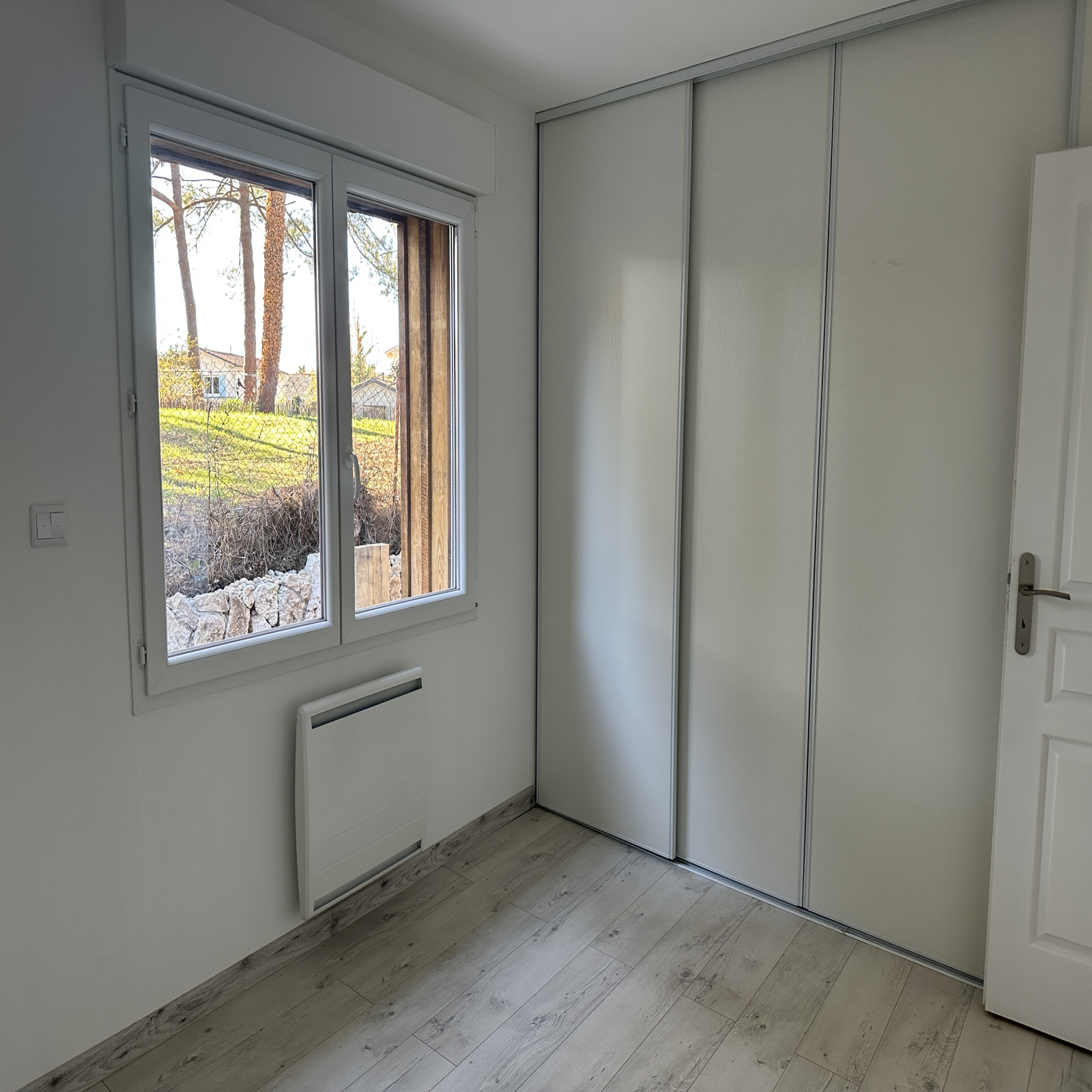 Idéalement située au centre-ville de Casteljaloux, à pieds de toutes commodités, dans un quartier paisible et sans circulation, maison neuve d'environ 130 m2 plain-pied avec jardin et garage.