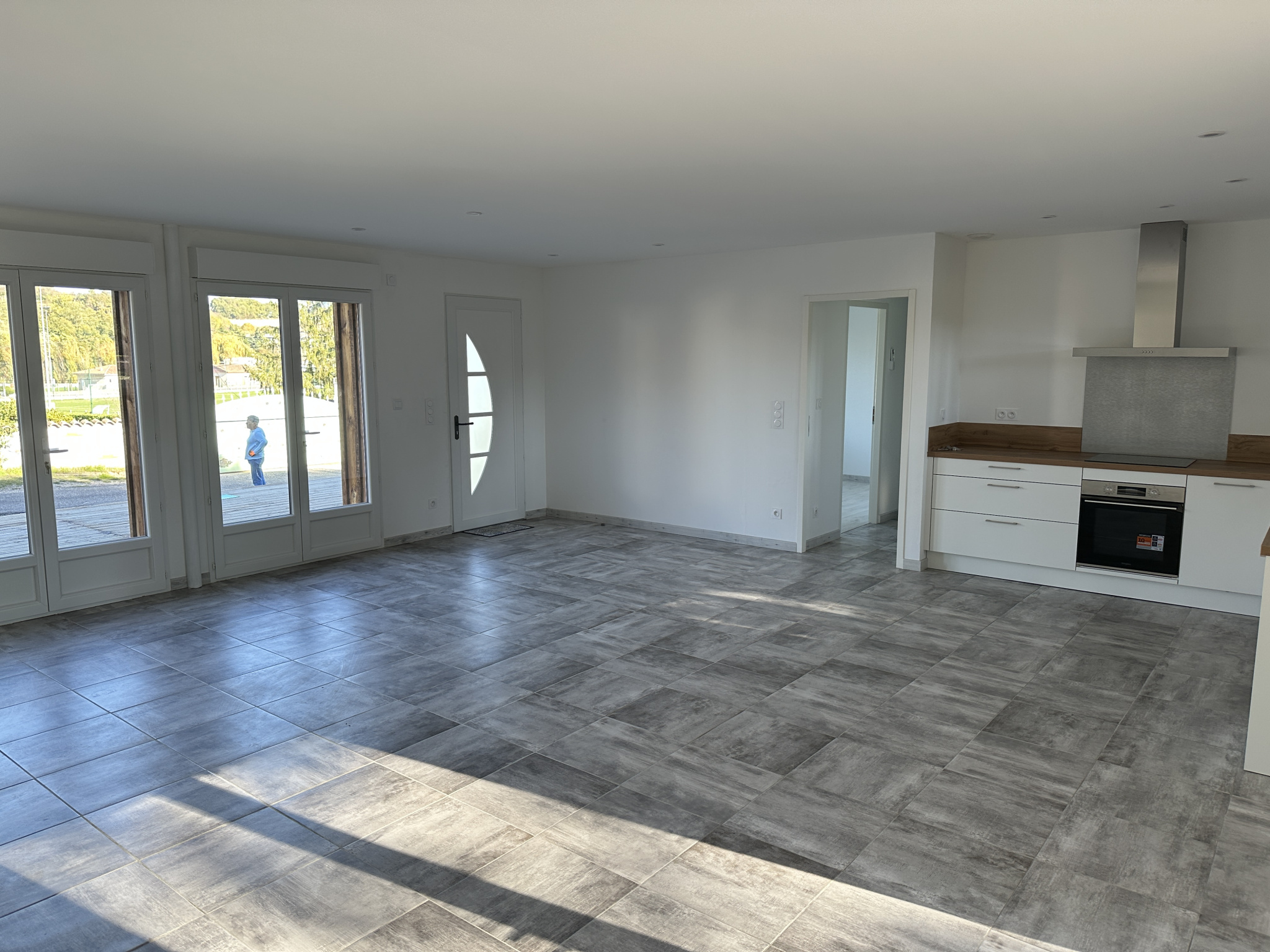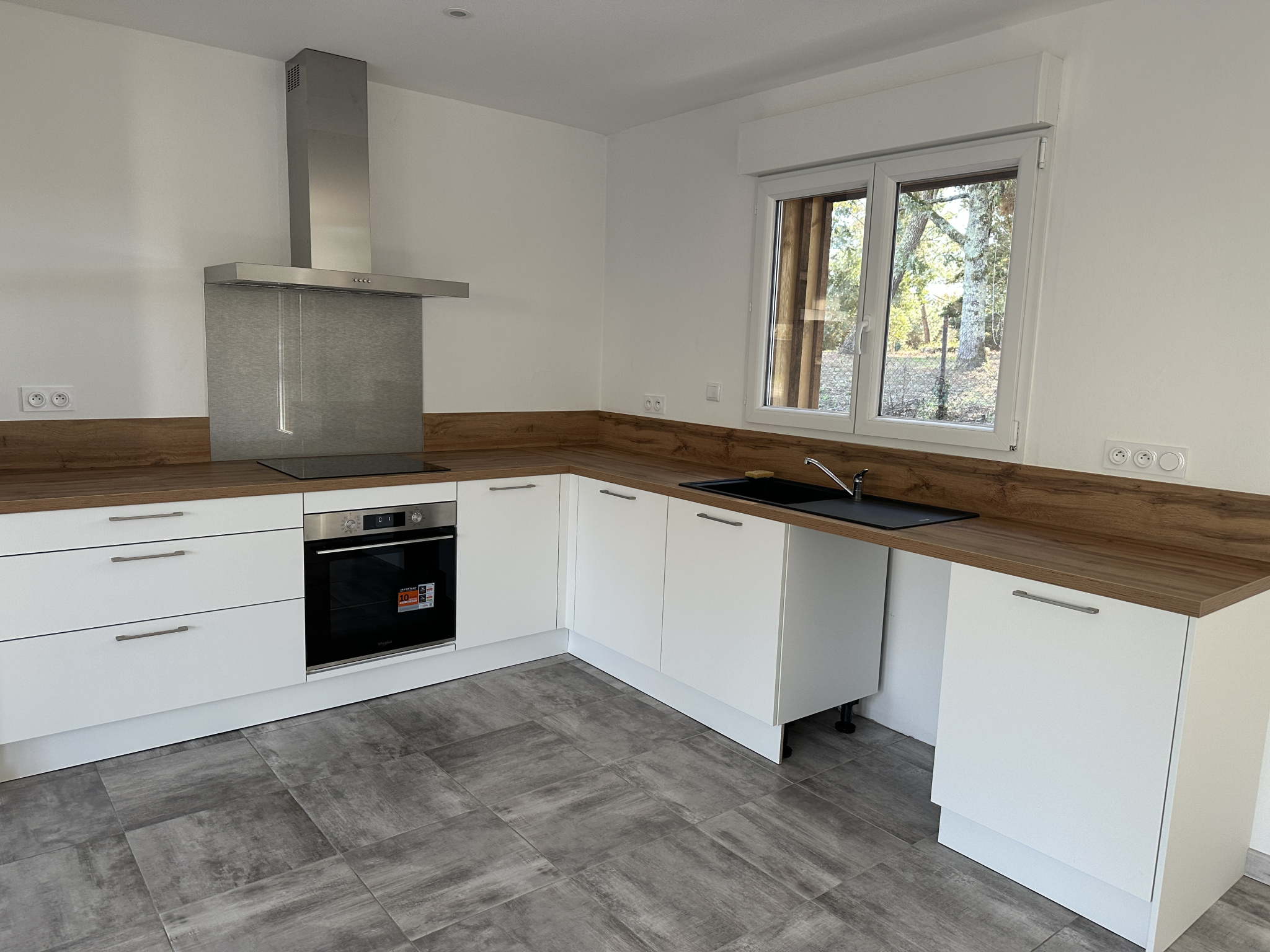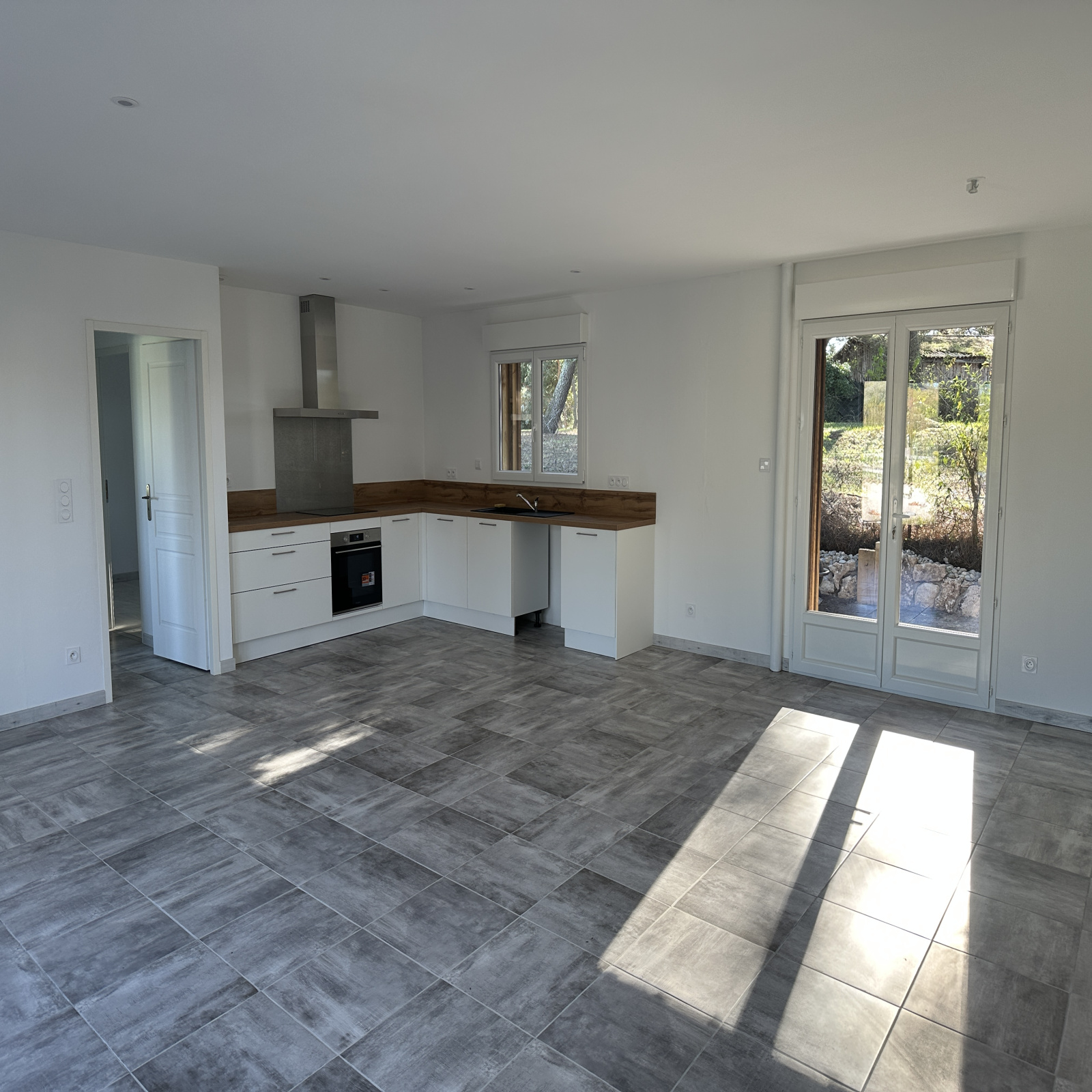 Elle se compose d'une entrée permettant l'accès à une pièce de vie lumineuse de plus de 50 m2 avec cuisine équipée, 3 chambres avec placards, wc, salle d'eau ainsi qu'un garage de de 23 m2.