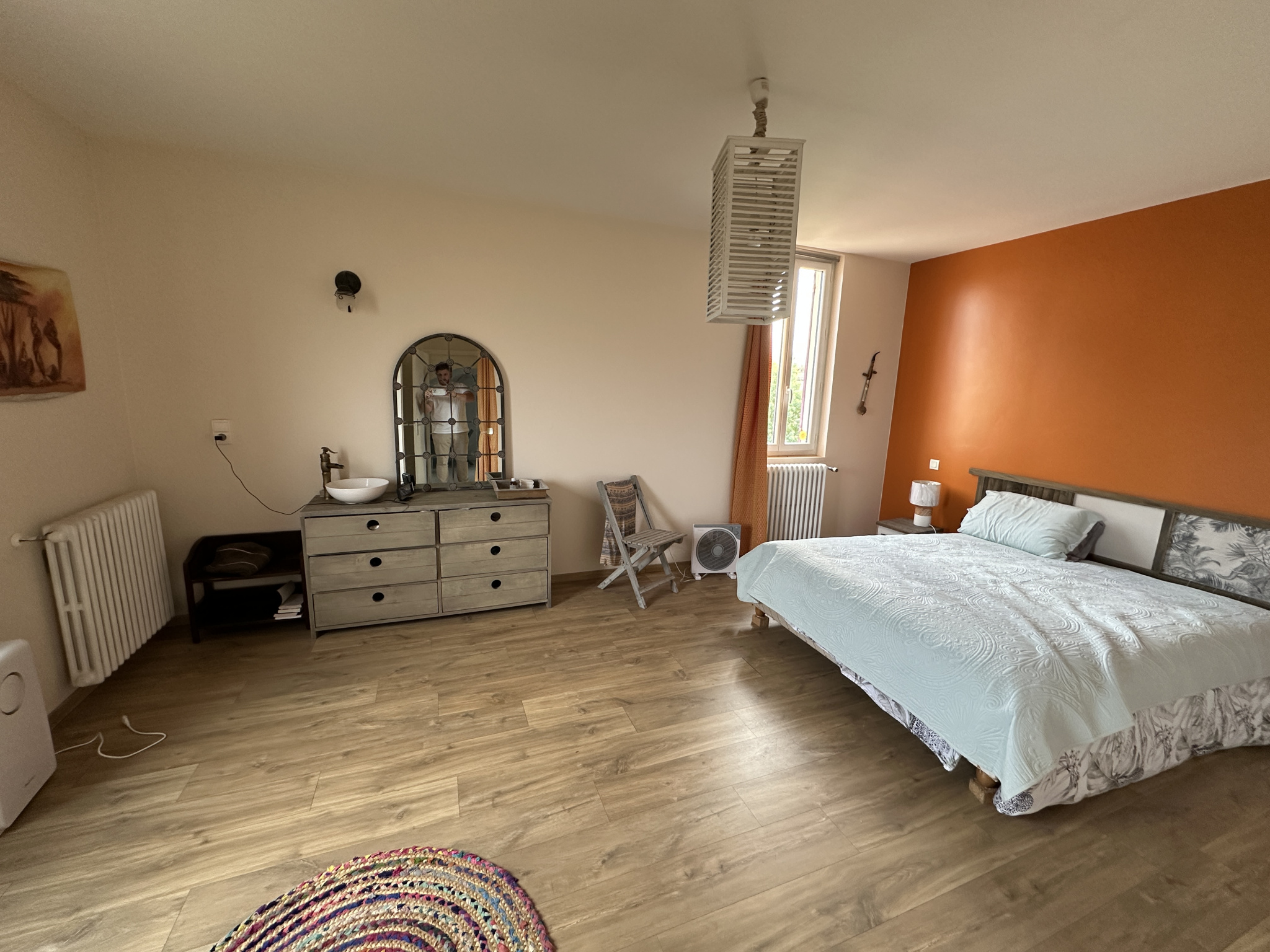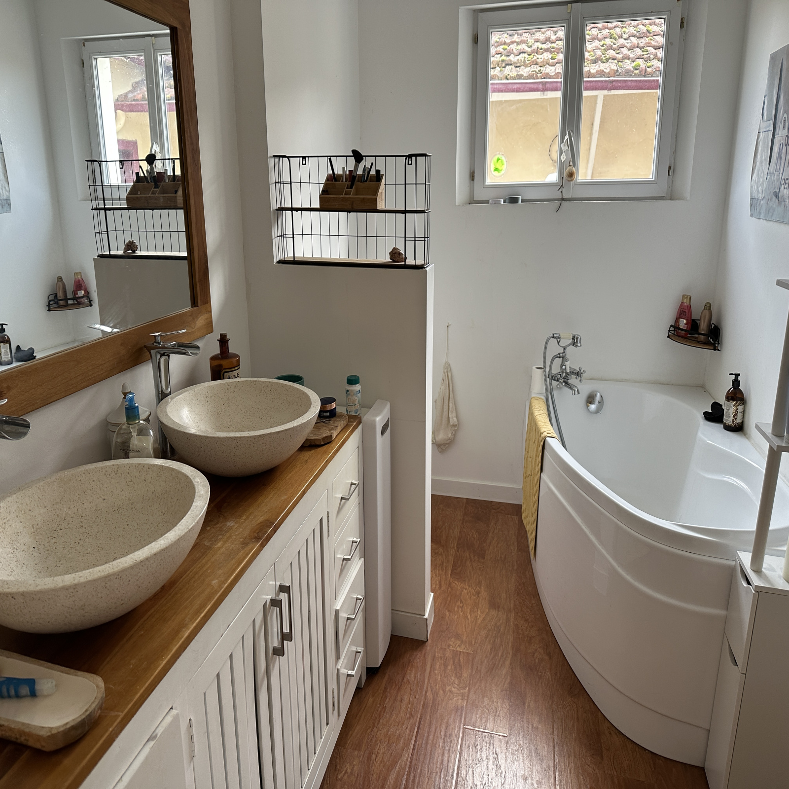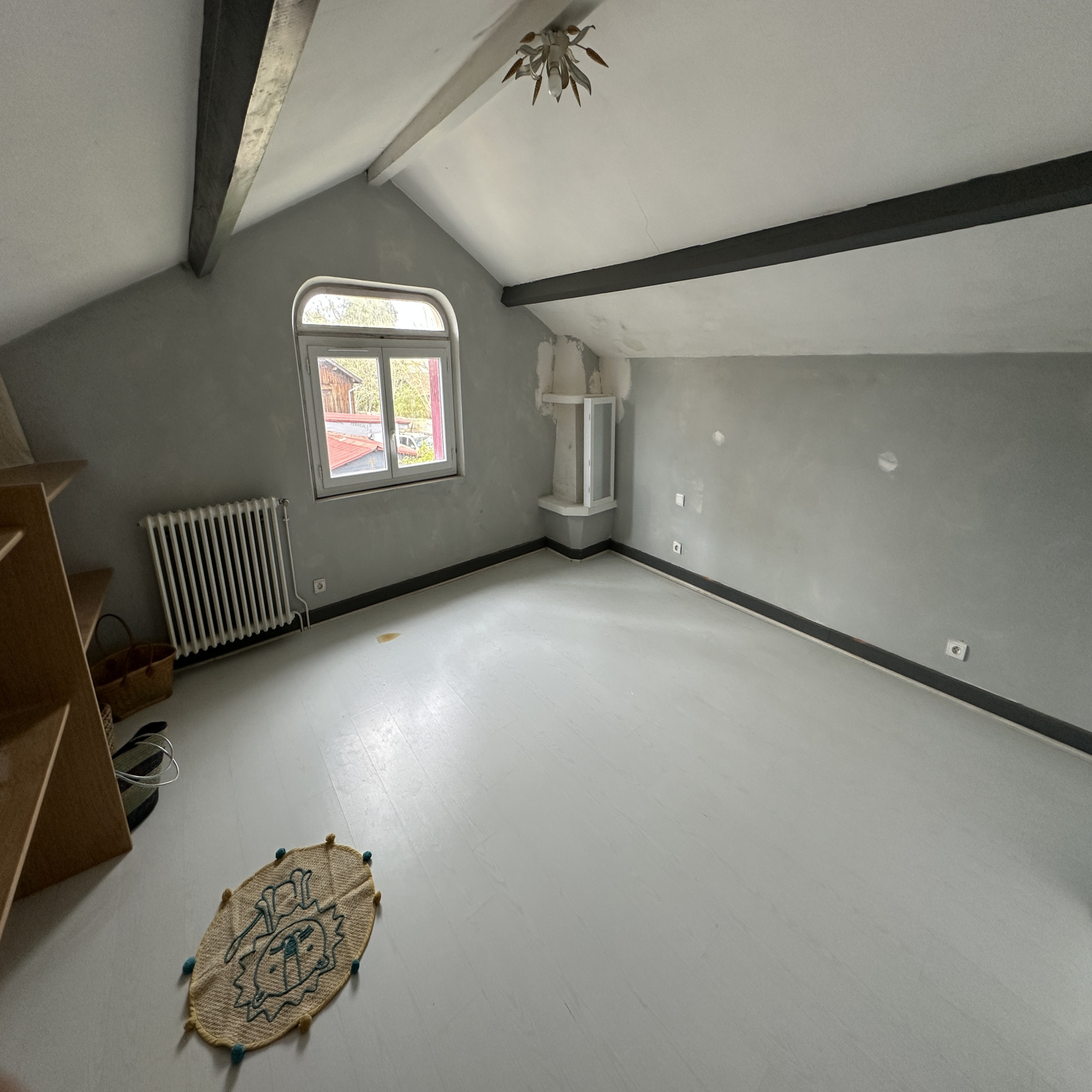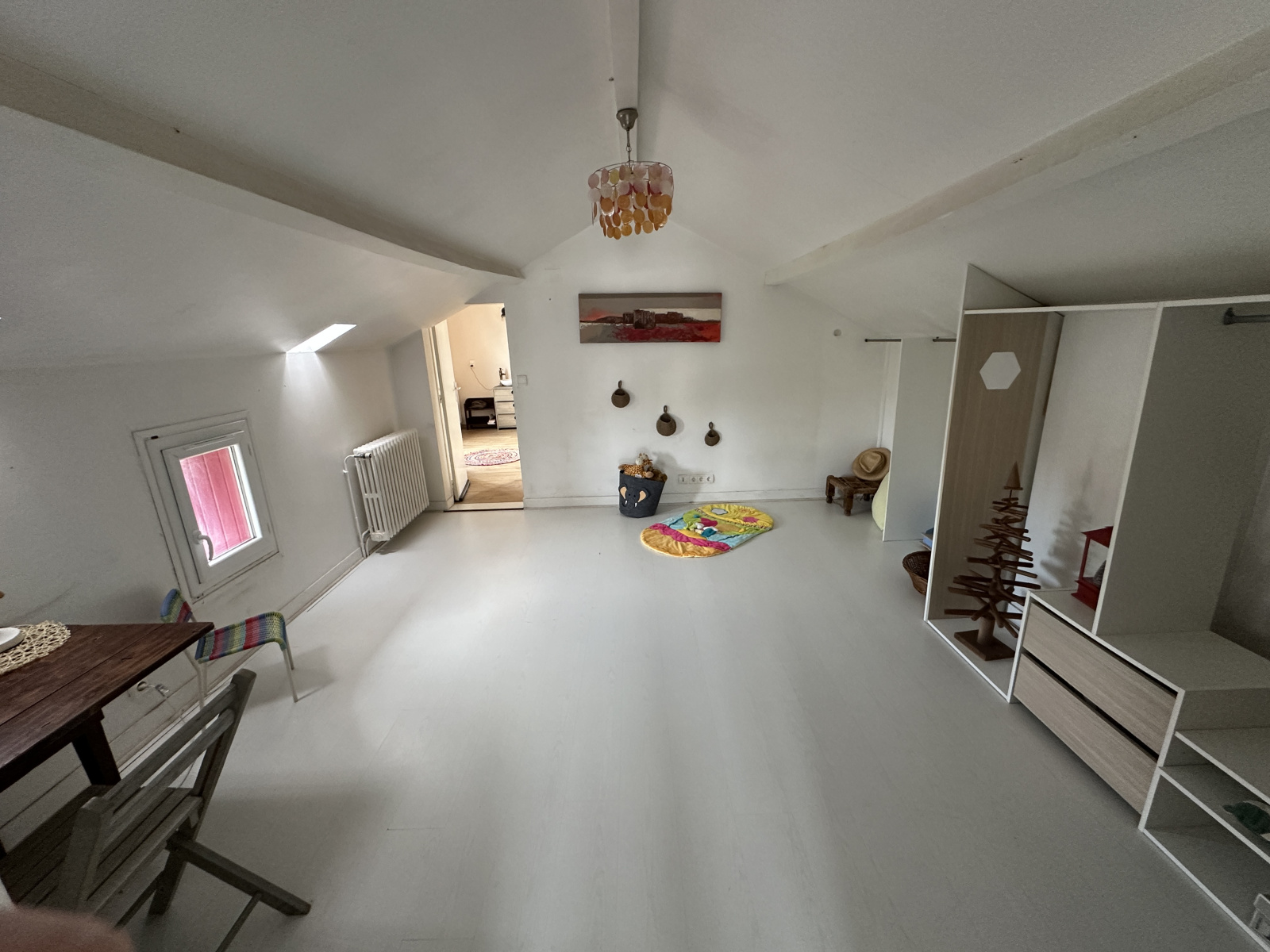 Elle se compose au rez de chaussée d'une entrée permettant l'accès à une vaste pièce à vivre d'environ 50 m2 ouverte sur une cuisine équipée, une salle de bains avec wc ainsi qu'une chambre. Nous retrouverons à l'étage 2 chambres, un bureau/dressing ainsi qu'un wc et un balcon.