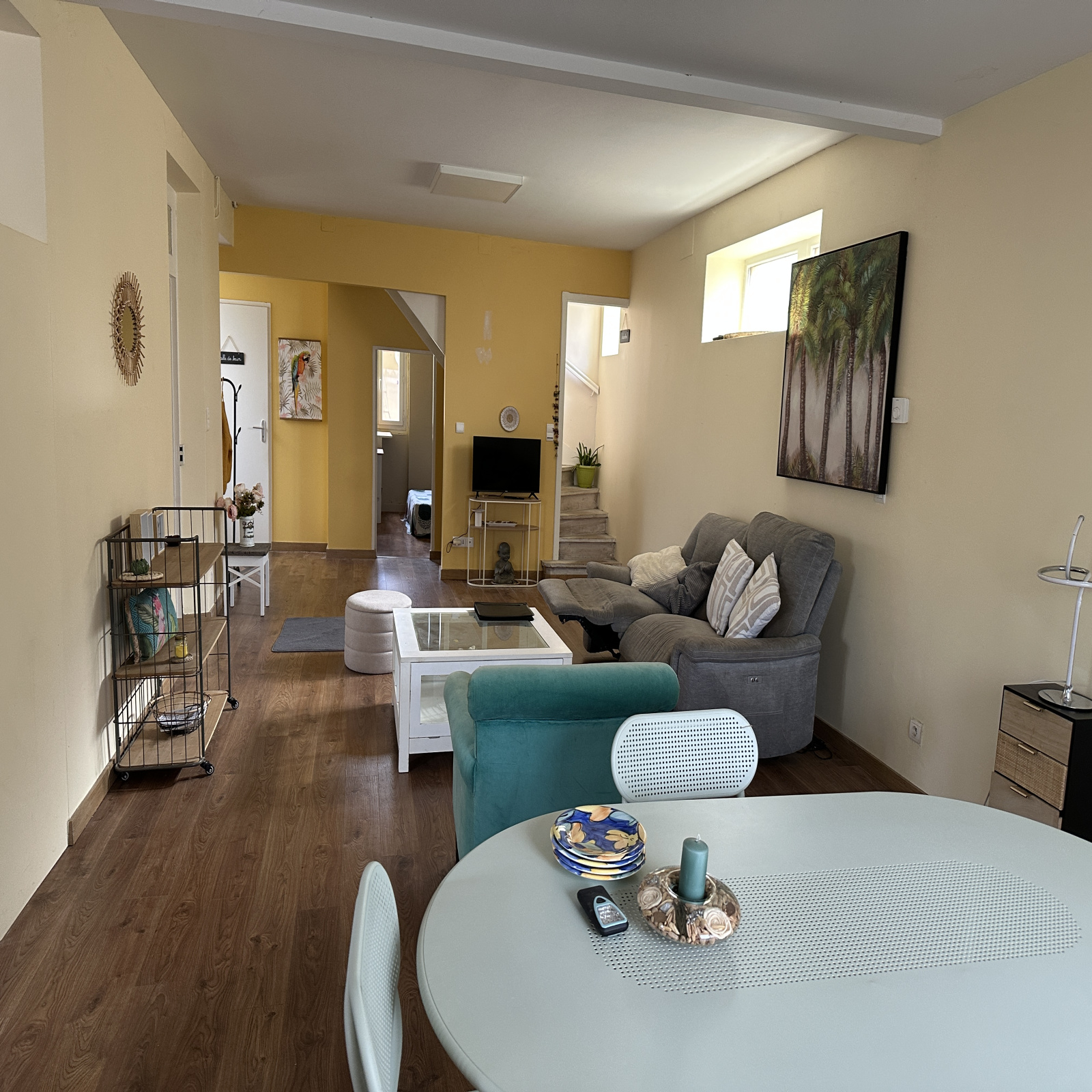 Idéalement située au centre-ville de Casteljaloux, dans une ruelle calme, maison sur 2 niveaux, rénovée et habitable de plain-pied avec jardin clos et garage.