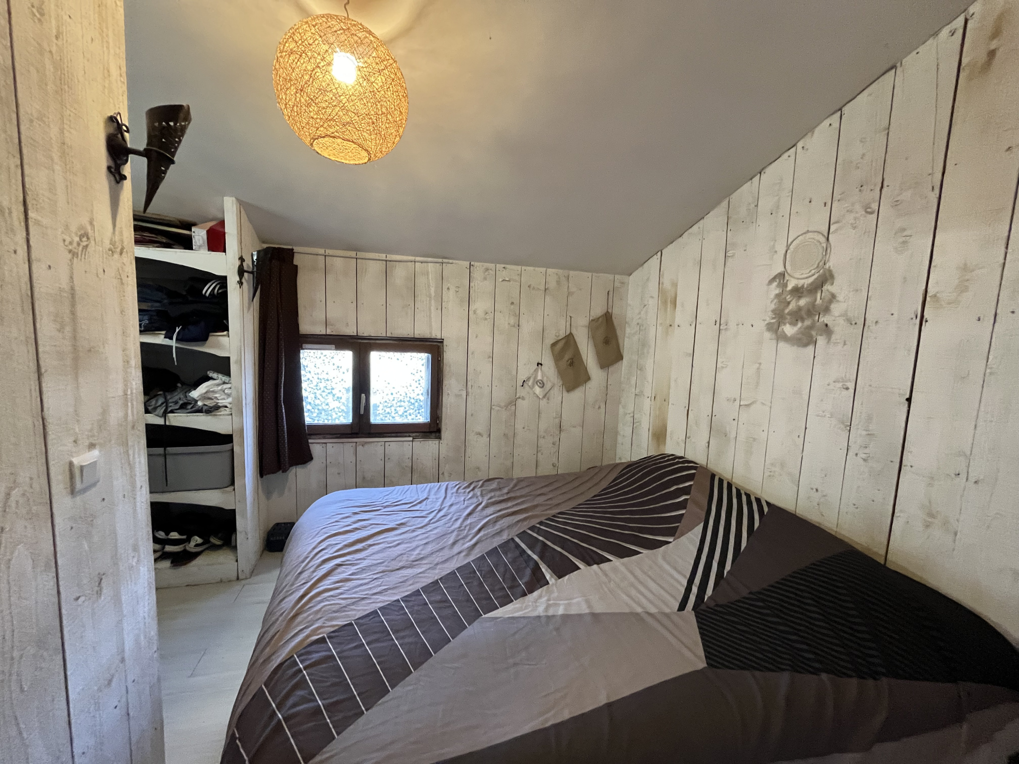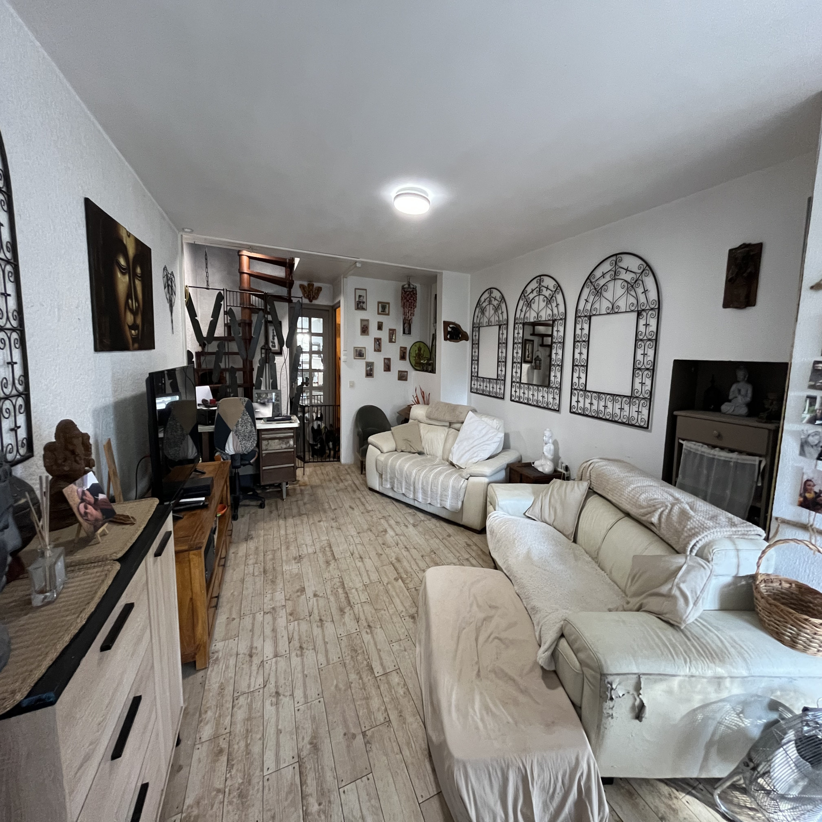 Elle se compose d'une entrée permettant l'accès à une pièce à vivre de 32 m2 avec cuisine, une buanderie, une salle d'eau avec wc et à l'étage 2 chambres et un bureau dont une avec dressing ainsi qu'une salle d'eau avec wc.