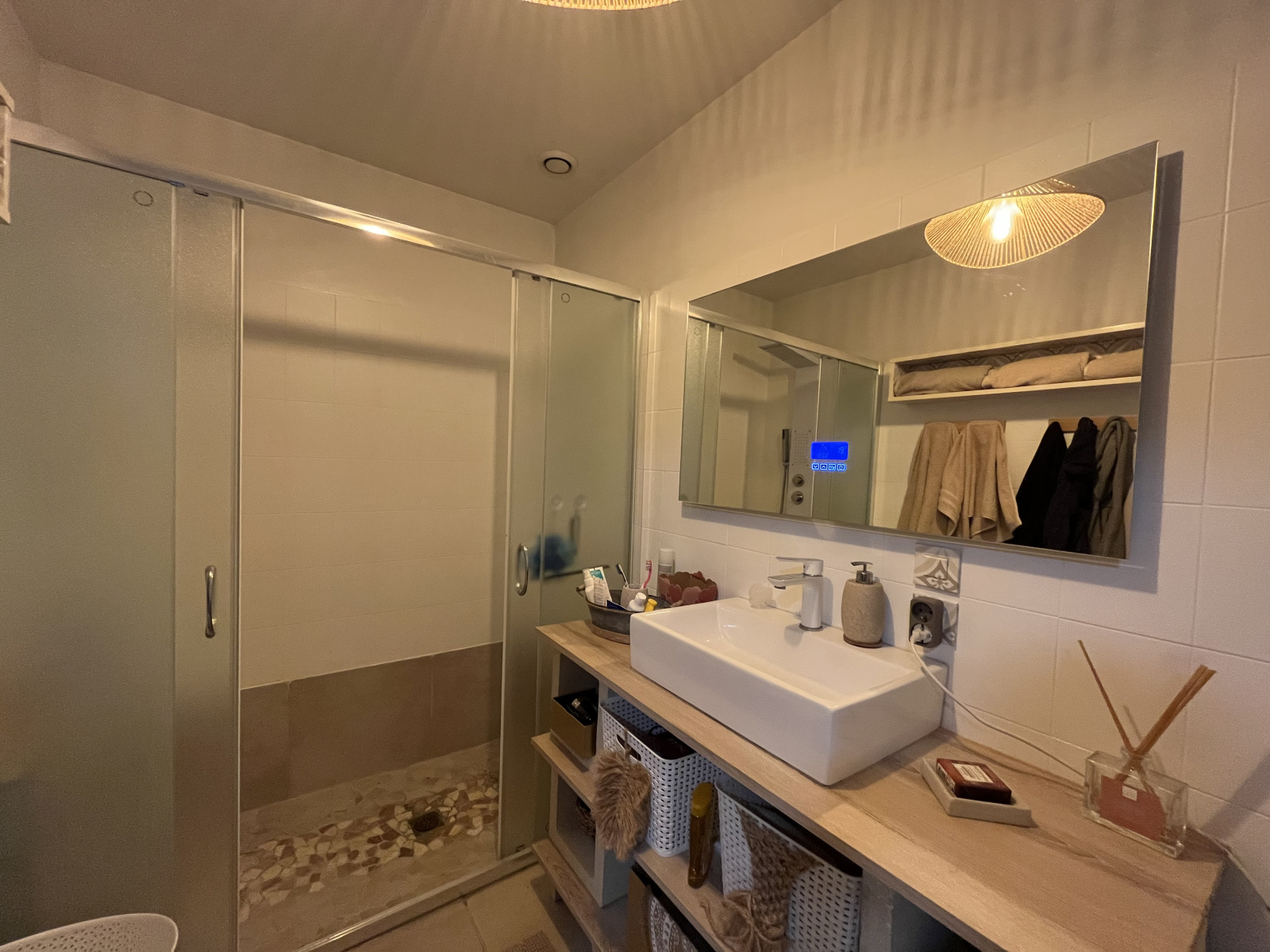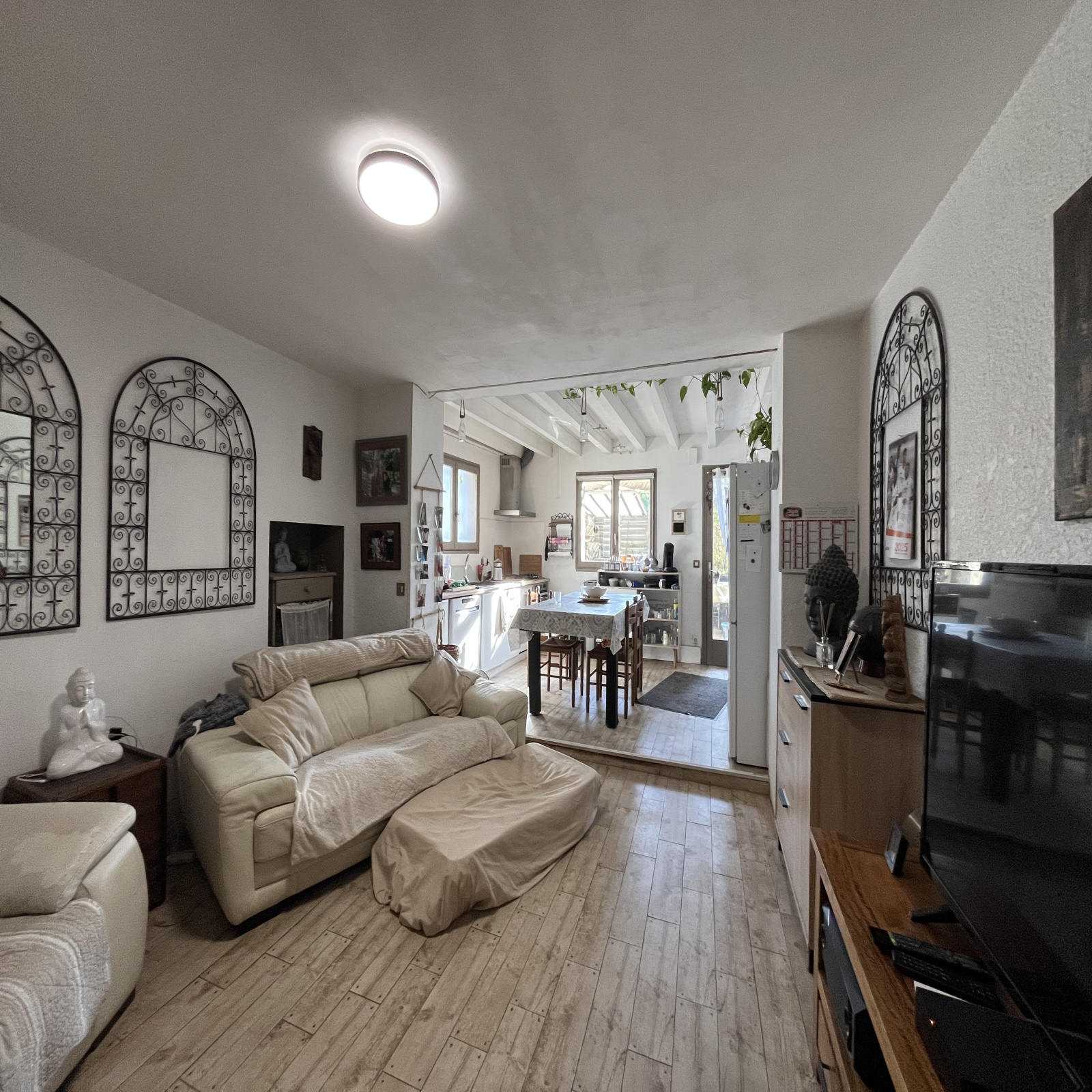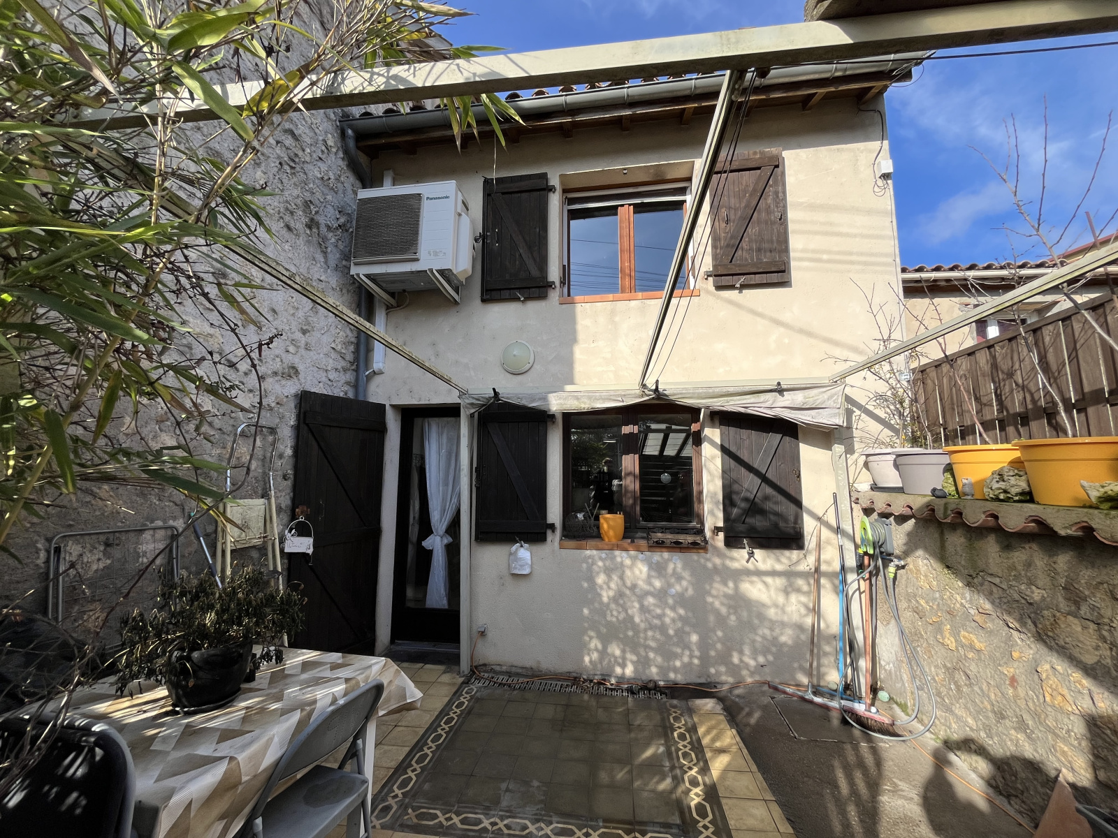 Terasse sans vis à vis , menuiseries double vitrage , chauffage par climatisations réversible et assainissement collectif par tout à l'égout.