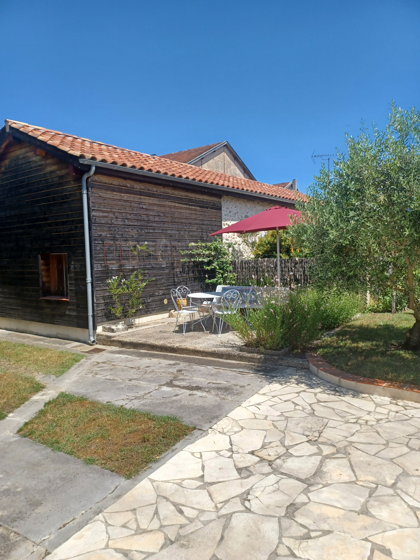 A l'extérieur, un jardin avec puits et une dépendance offrant un espace garage, deux ateliers ainsi qu'une arrière cuisine.