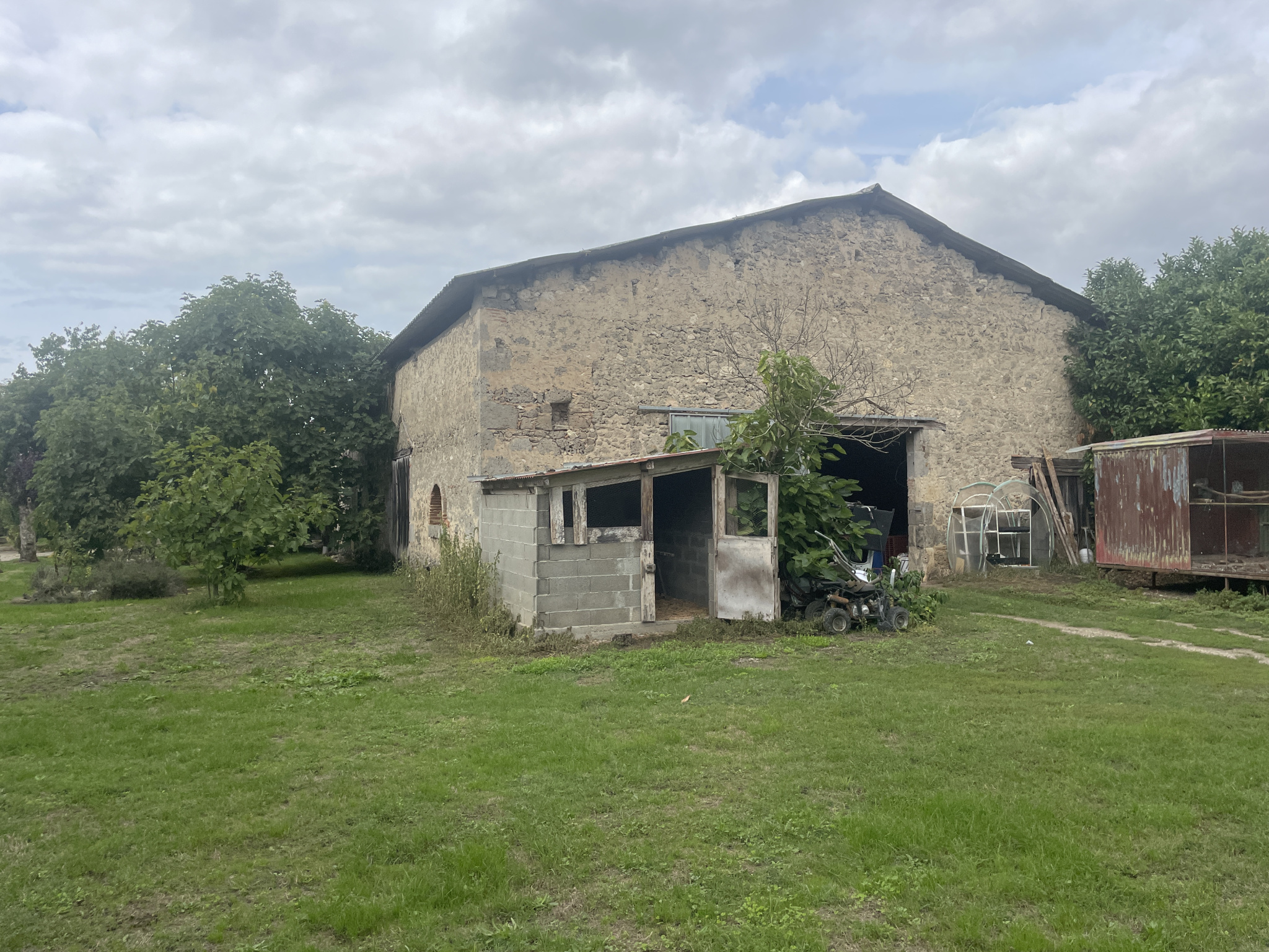 PROPRIETE en pierre, composée d'une veranda, une cuisine, un dégagement desservant deux grandes chambres, un cellier, une chaufferie, une salle d'eau, un WC, et un bureau. Avec un batiment en pierre de 550 m2, sur un terrain de 4 hectars 6915 m2 avec puits. DPE en cours de réalisation .