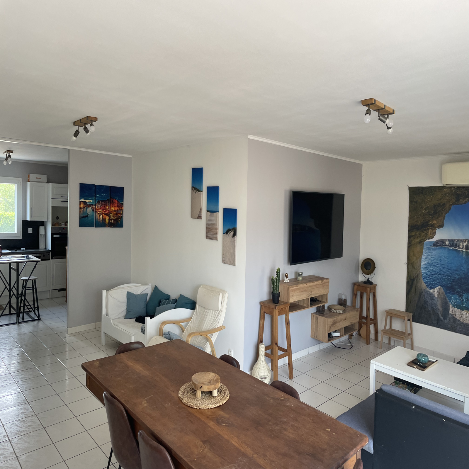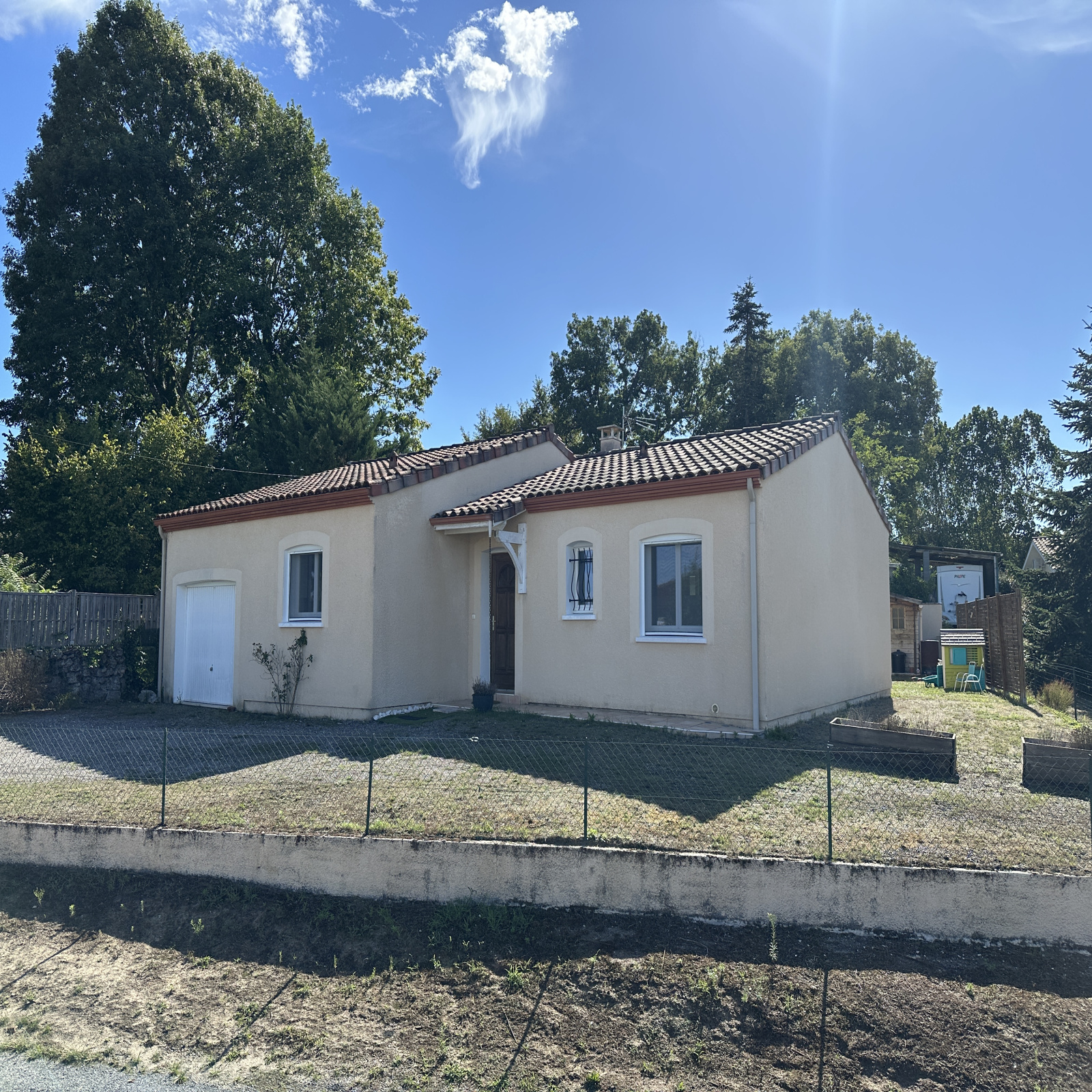 Cette habitation se compose d'une entrée permettant l'accès à une pièce à vivre d'envrion 50 m2 avec sa cuisine équipée et son séjour lumineux, un dégagement permettant l'accès à 3 chambres avec placards, salle d'eau avec douche à l'italienne, ainsi qu'un wc séparé et un garage carrelé et isolé d'environ 20m2.