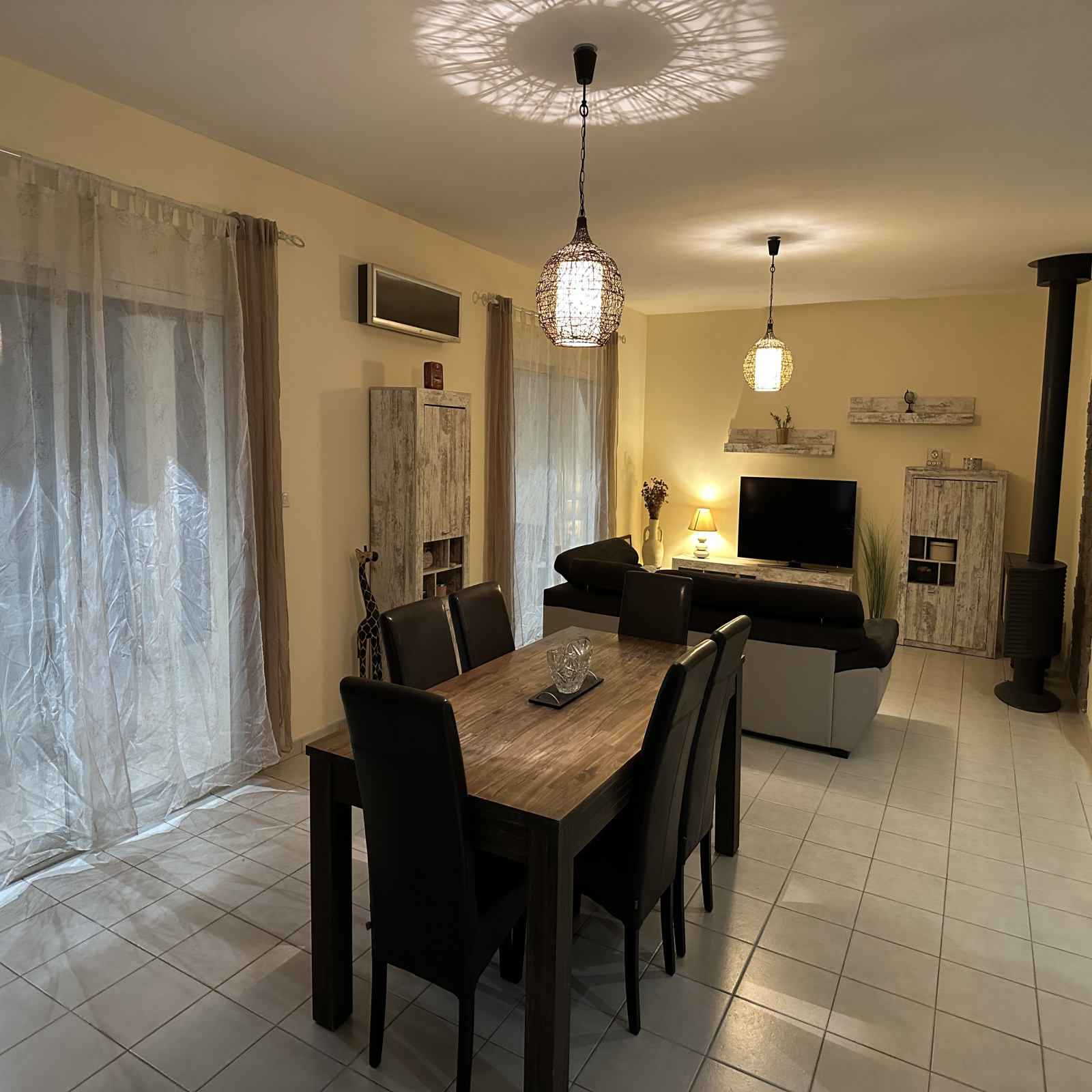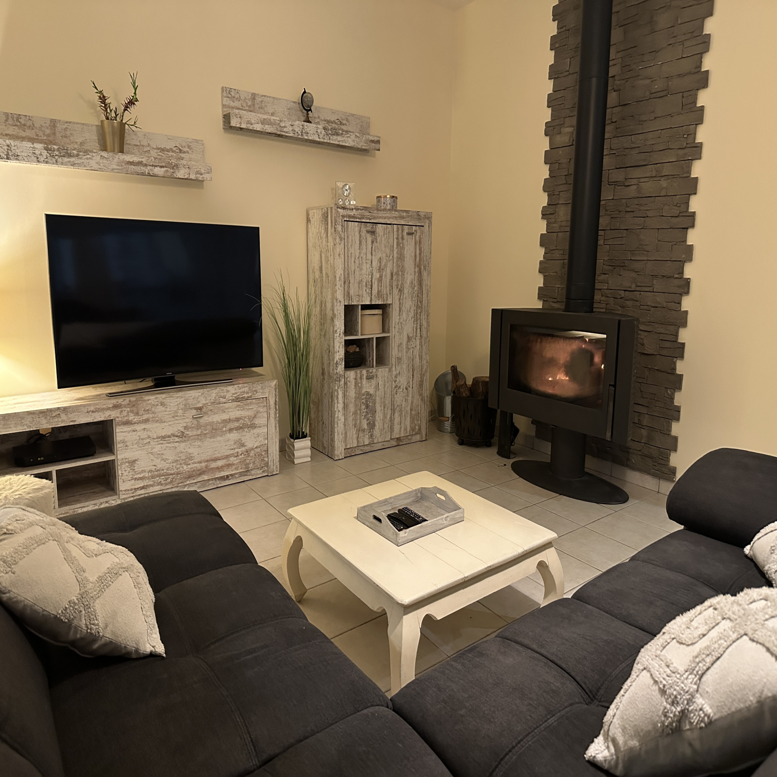 L'habitation principale se compose d'une entrée permettant l'accés sur une pièce à vivre lumineuse avec poèle à bois , climatisation réversible ainsi qu'une cuisine équipée, un dégagement permettant l'accès à 3 chambres, wc, salle de bains avec douche ainsi qu'un cellier/ buanderie.