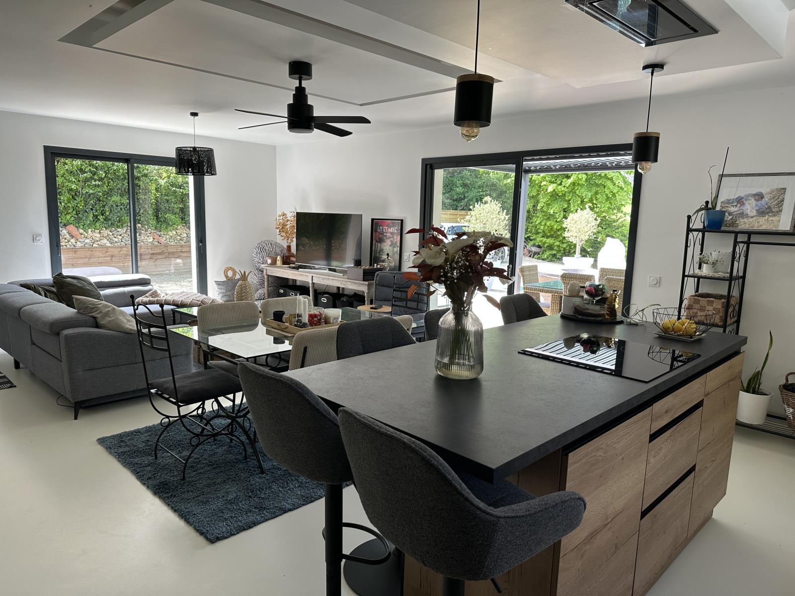 Située dans un quartier résidentiel de casteljaloux, maison neuve standing avec piscine et suite parentale.