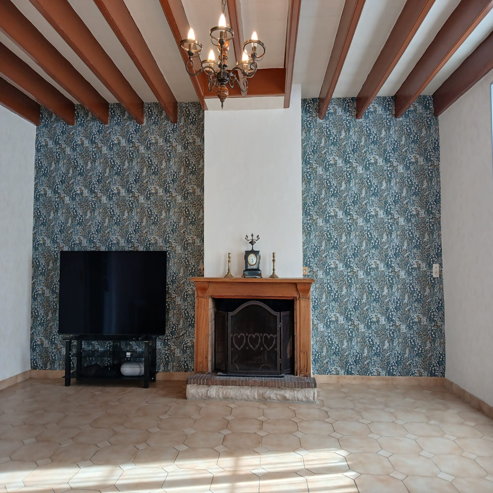 Un vaste séjour chaleureux avec cheminée insert