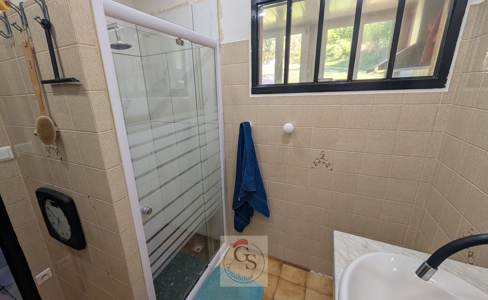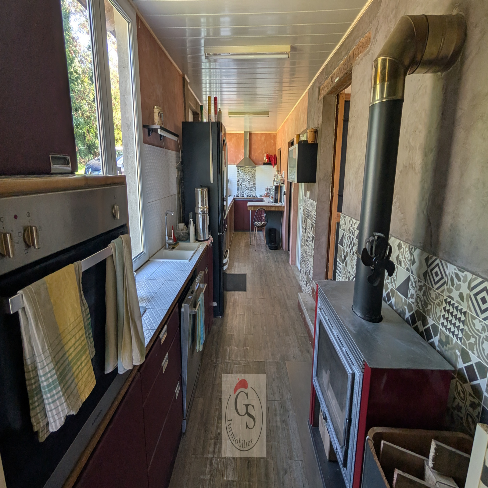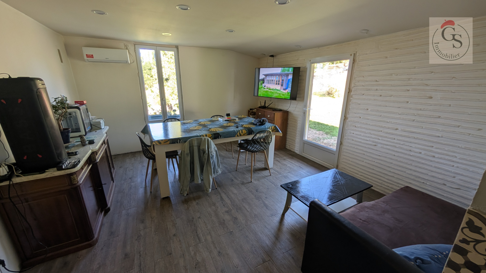 Maison comprenant 1 grande cuisine, 1 salon-séjour, 2 chambres, une salle d'eau, un wc et une buanderie.
