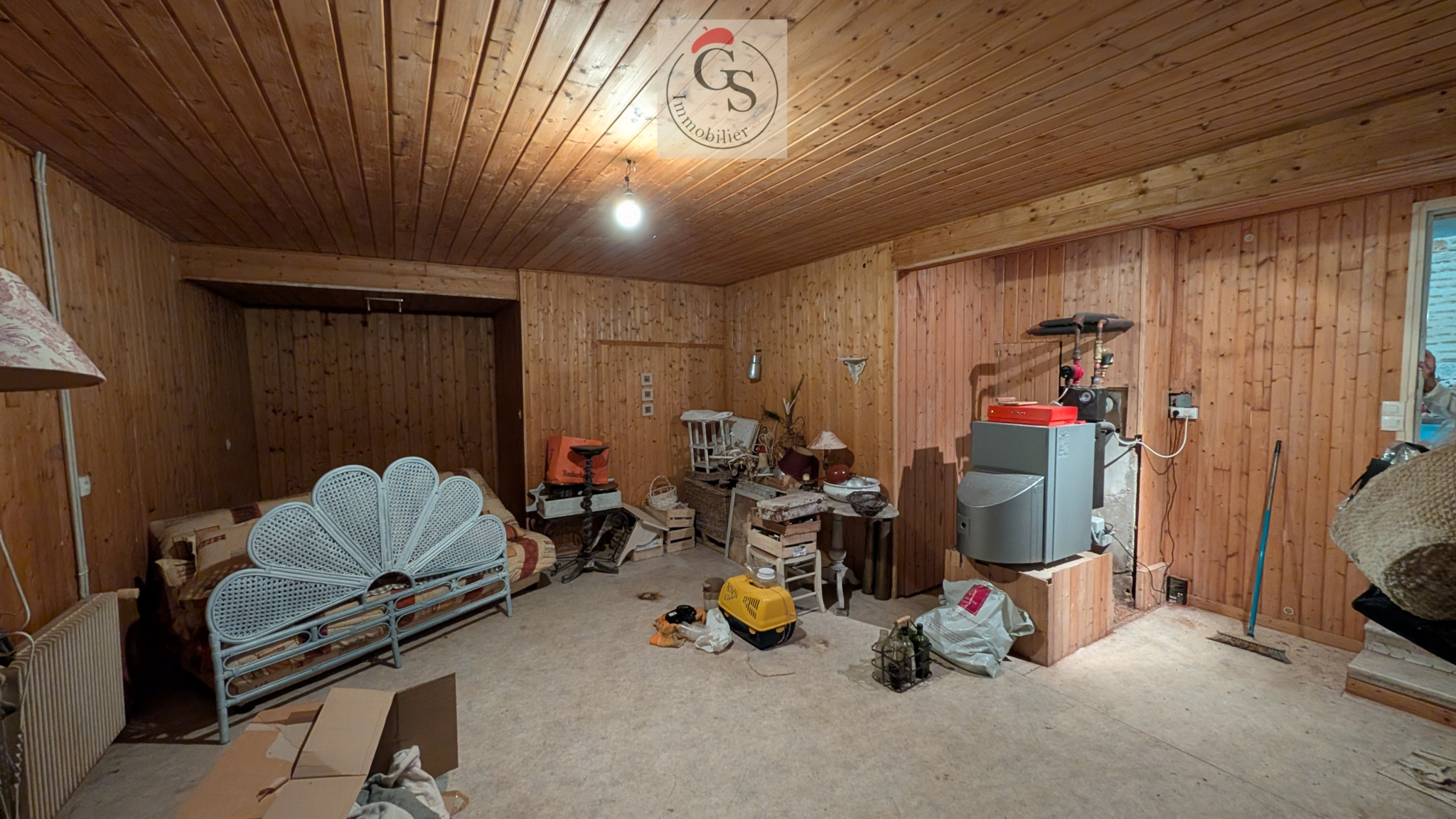 Partie technique: menuiseries simple vitrage, chauffage chaudière fioul, poeles à bois, et clim dans pièce de vie de la maison secondaire.