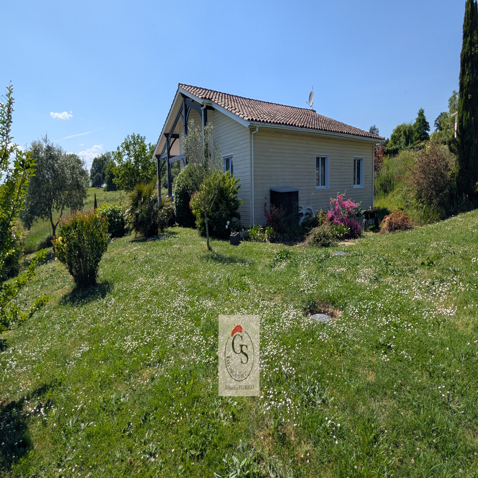 Cette jolie maison à ossature bois, profite d'une superbe vue dominante sur la campagne environnante, du calme tout en étant à proximité du coeur du village, avec ses petits commerces et son marché.