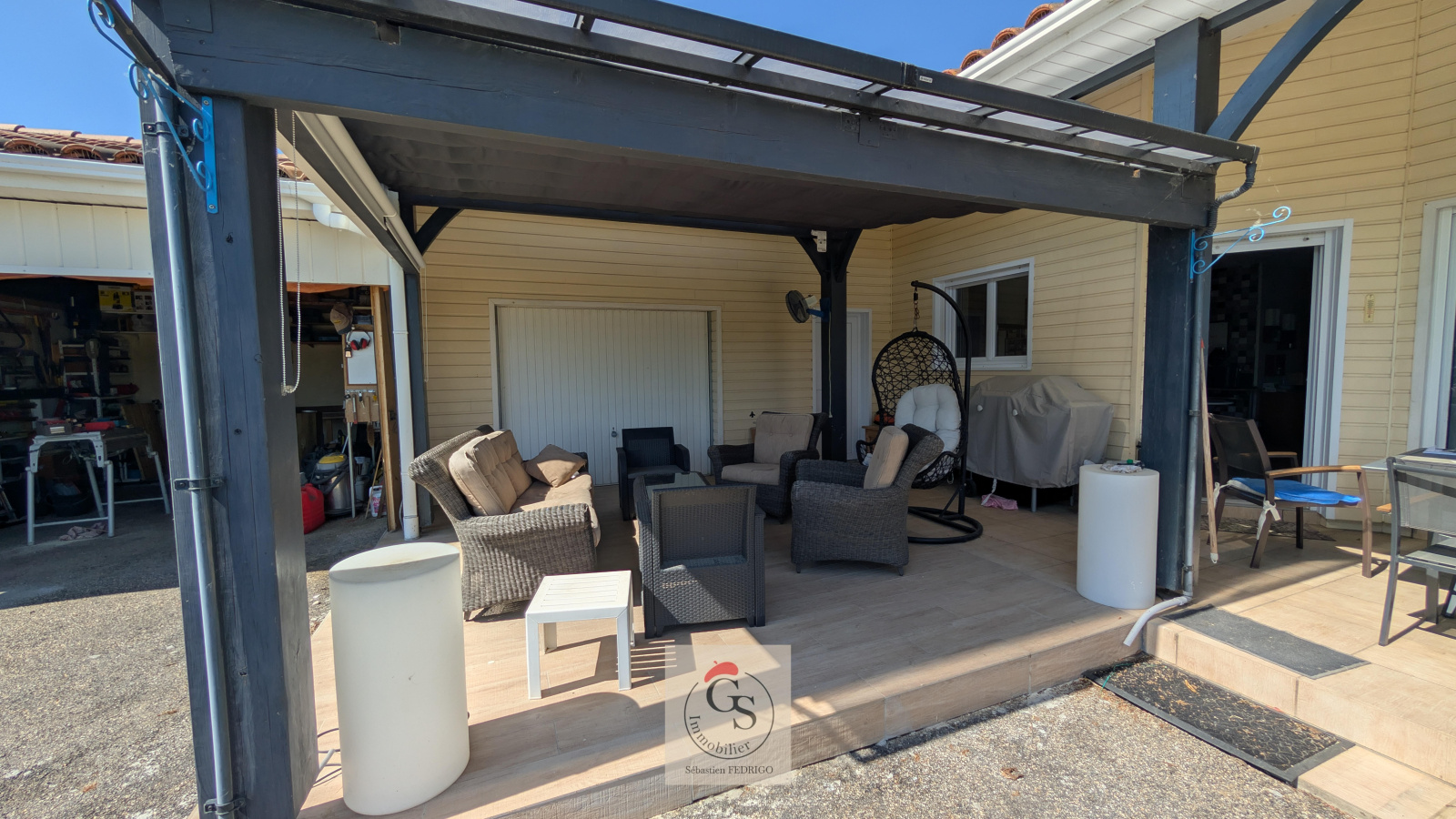 A l'extérieur, une grande terrasse couverte, et une grande pergola pour profiter de moments de détente entre amis, ou simplement profiter du panorama, un garage attenant pouvant être aménagé en salle de jeux ou autre, et son abri voiture, ainsi qu'un petit abri de jardin pouvant accueillir vos outillages.