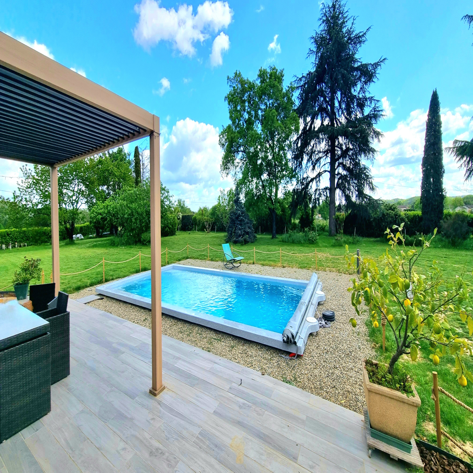 Le tout sur un terrain arboré de 5000m² avec piscine 4x8,terrasses, garage, carport et cabanon.