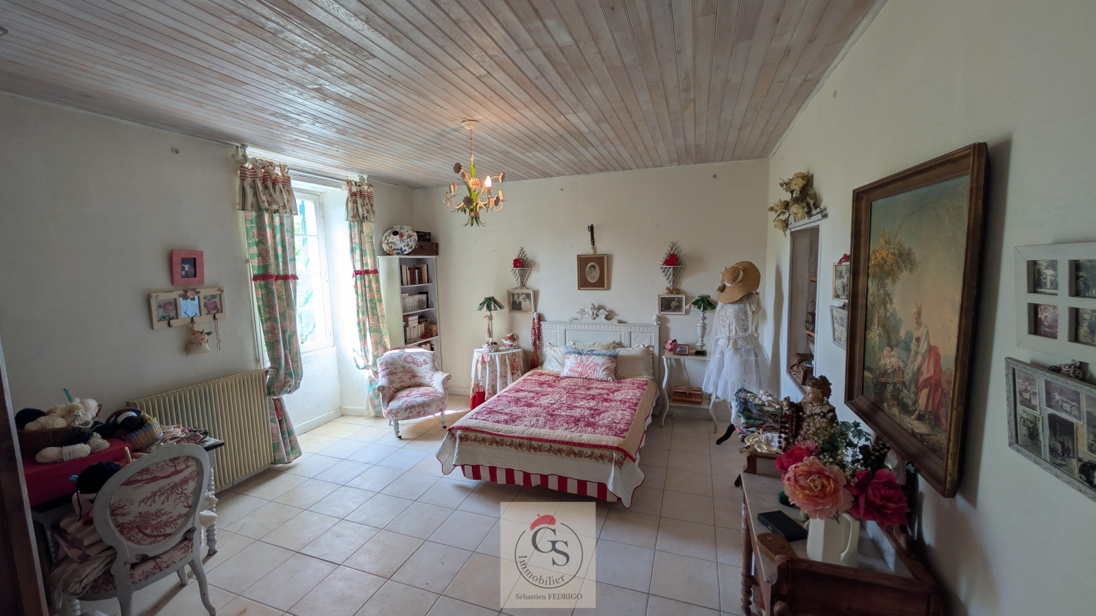 Partie technique: menuiseries simple vitrage, chauffage chaudière fioul, poeles à bois, et clim dans pièce de vie de la maison secondaire.
