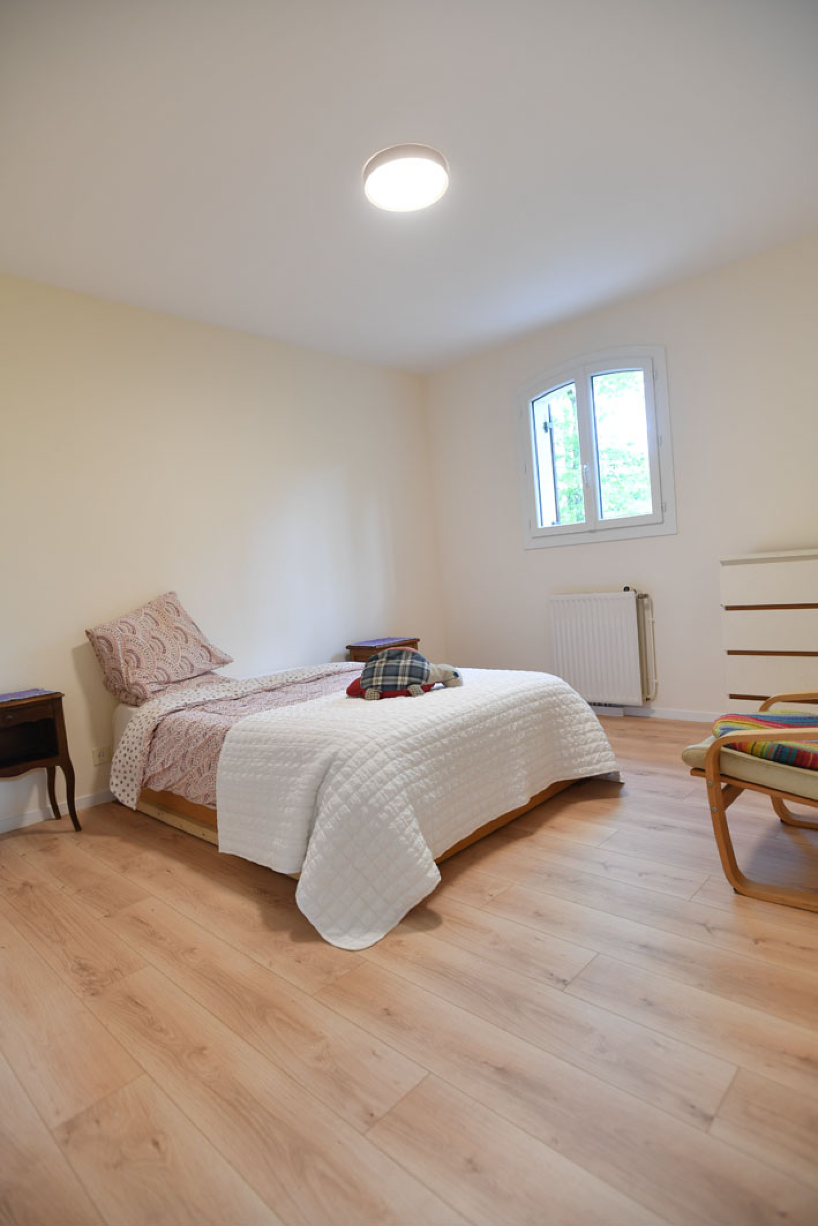 Au niveau supérieur, il y a trois autres chambres, un bureau, une salle de bain et des toilettes séparées.