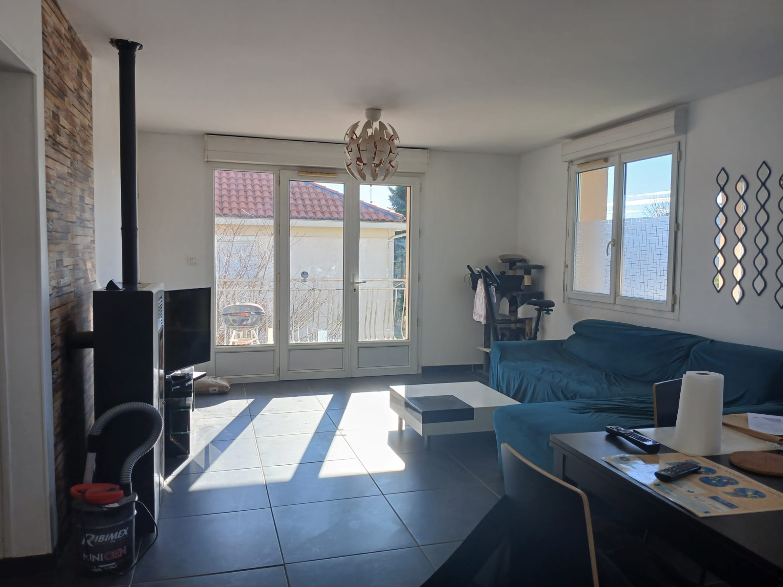 Elle se compose de deux chambres, d’une cuisine meublée, d’un séjour lumineux équipé d’un poêle à granulés, ouvrant sur un balcon, ainsi que d’une salle de bain et d’un bureau.