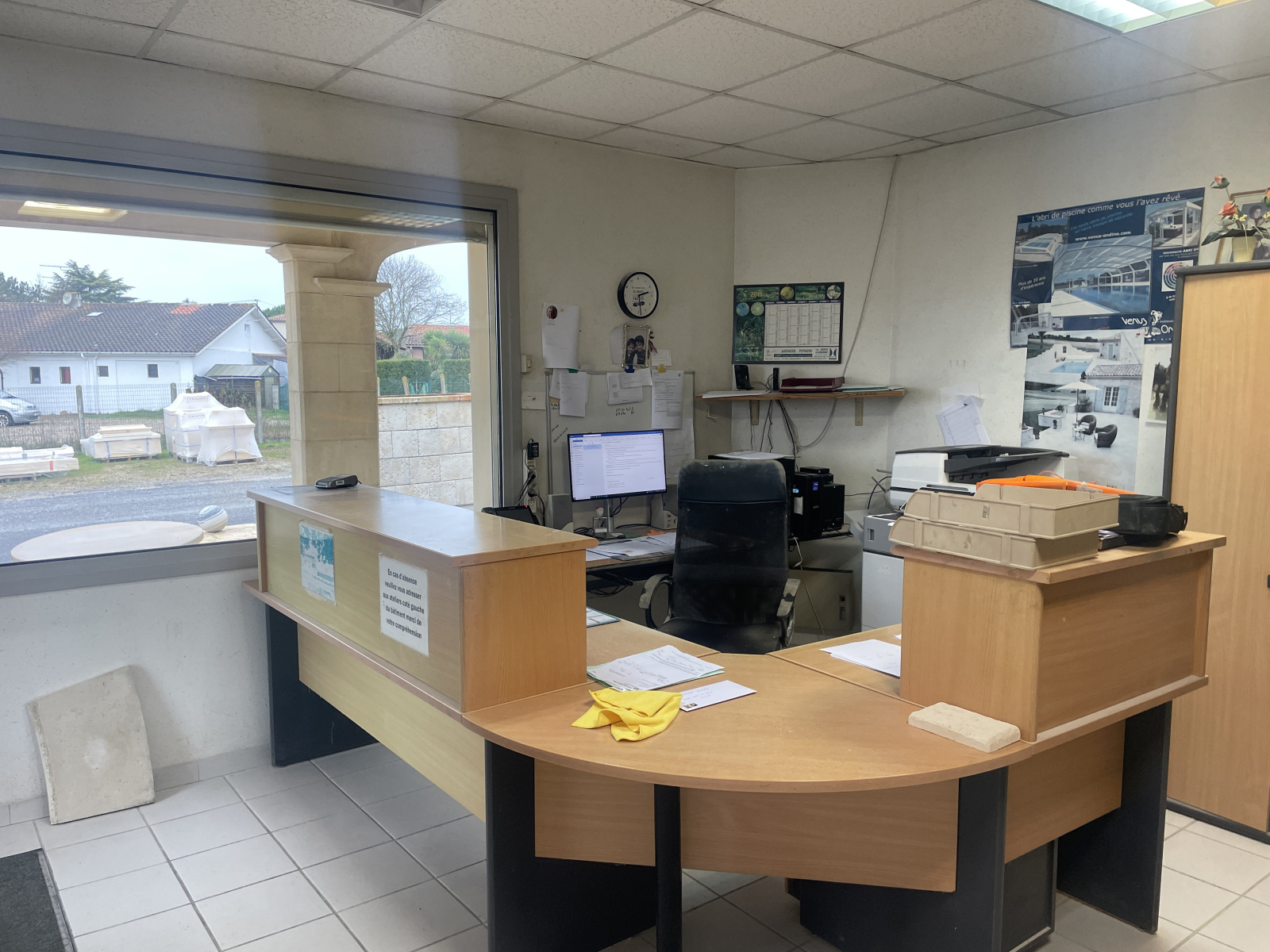 Il est composé de deux bureaux, un cellier, un coin cuisine, WC avec douche, un espace détente , batiment de stockage de 270m², un garage et grand parking goudronné. Sur un terrain de 4300m².
