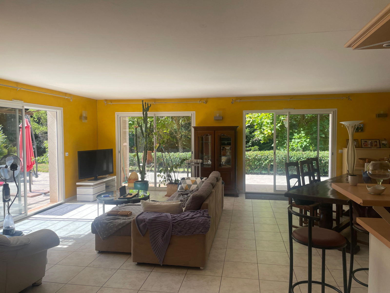 En campagne au calme et environnement boisé , Grande maison de plain pied composée d'une entrée , une grande pièce de vie averc sa cuisine equipée, un cellier, une véranda, un WCV, dégagement desservant 4 chambres, une salle de bains avec douche. Un grand sous-sol avec garage, salle de jeux. Sur un parc arboré et boisé de 5400m² avec sa piscine. Vous serez sous le charme !!!!