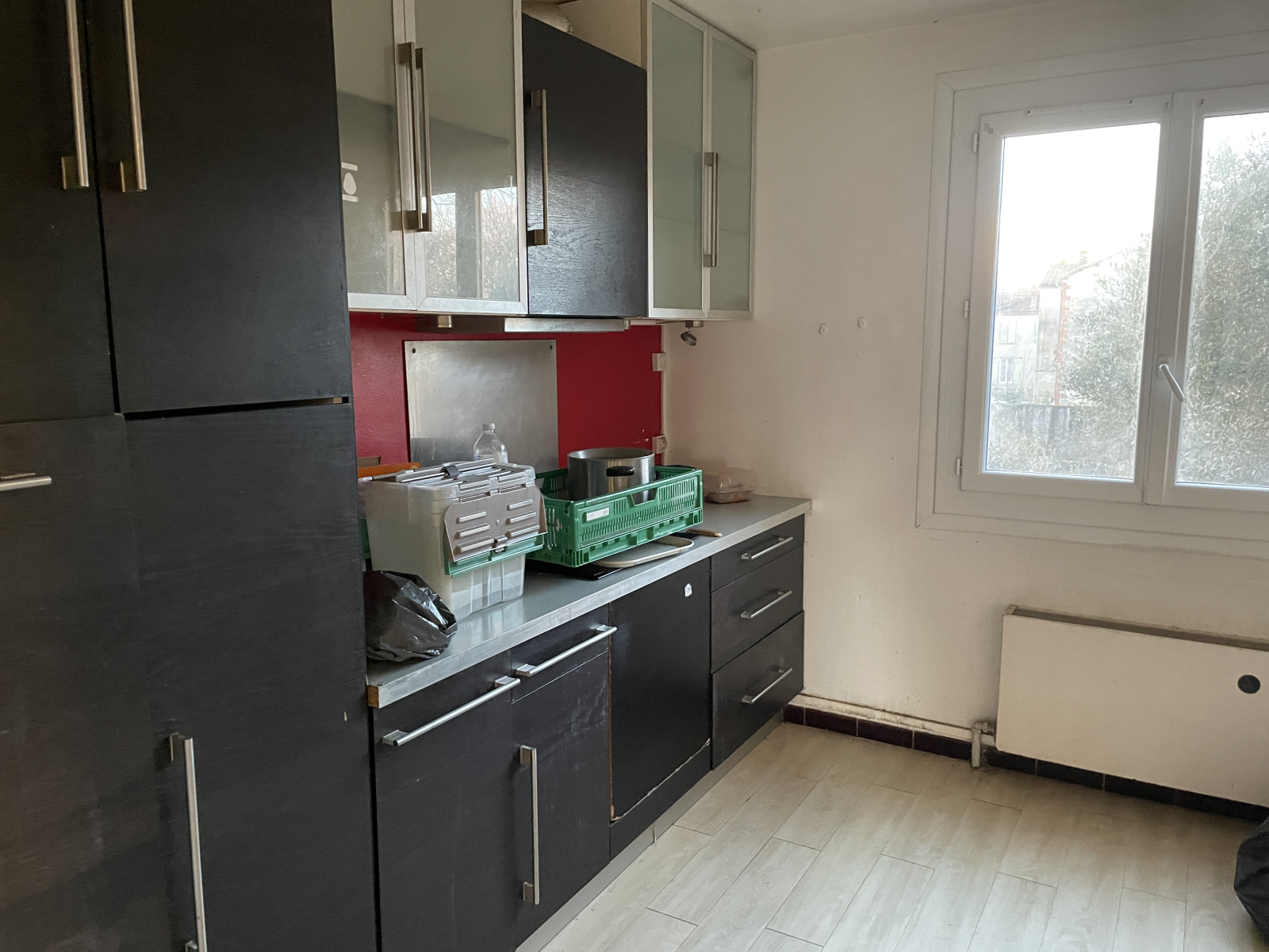 APPARTEMENT T4 avec 3 garages, au 1ér étage d'une petite résidence , composé d'une entrée, une cuisine, 3 chambres, salon-séjour , salle de bains, WC, un balcon, une cave et 3 garages. Actuellement loué 450€/mois et les garages 40€/mois l'unité. En centre ville proche de toutes commodités .