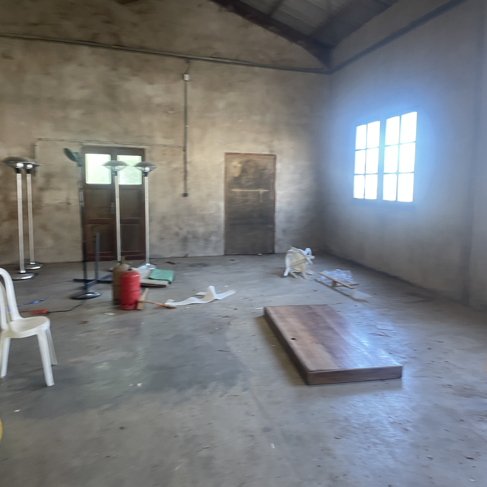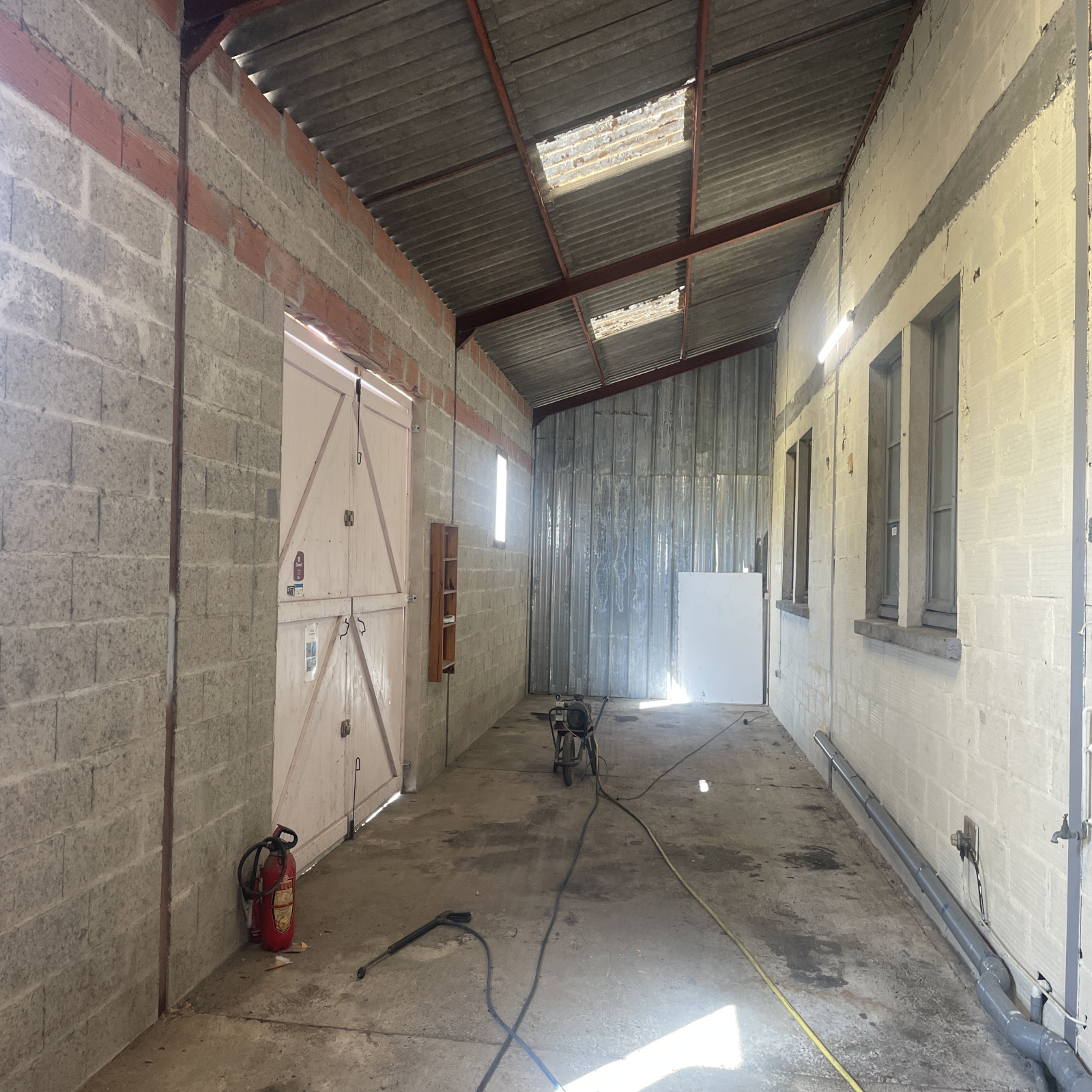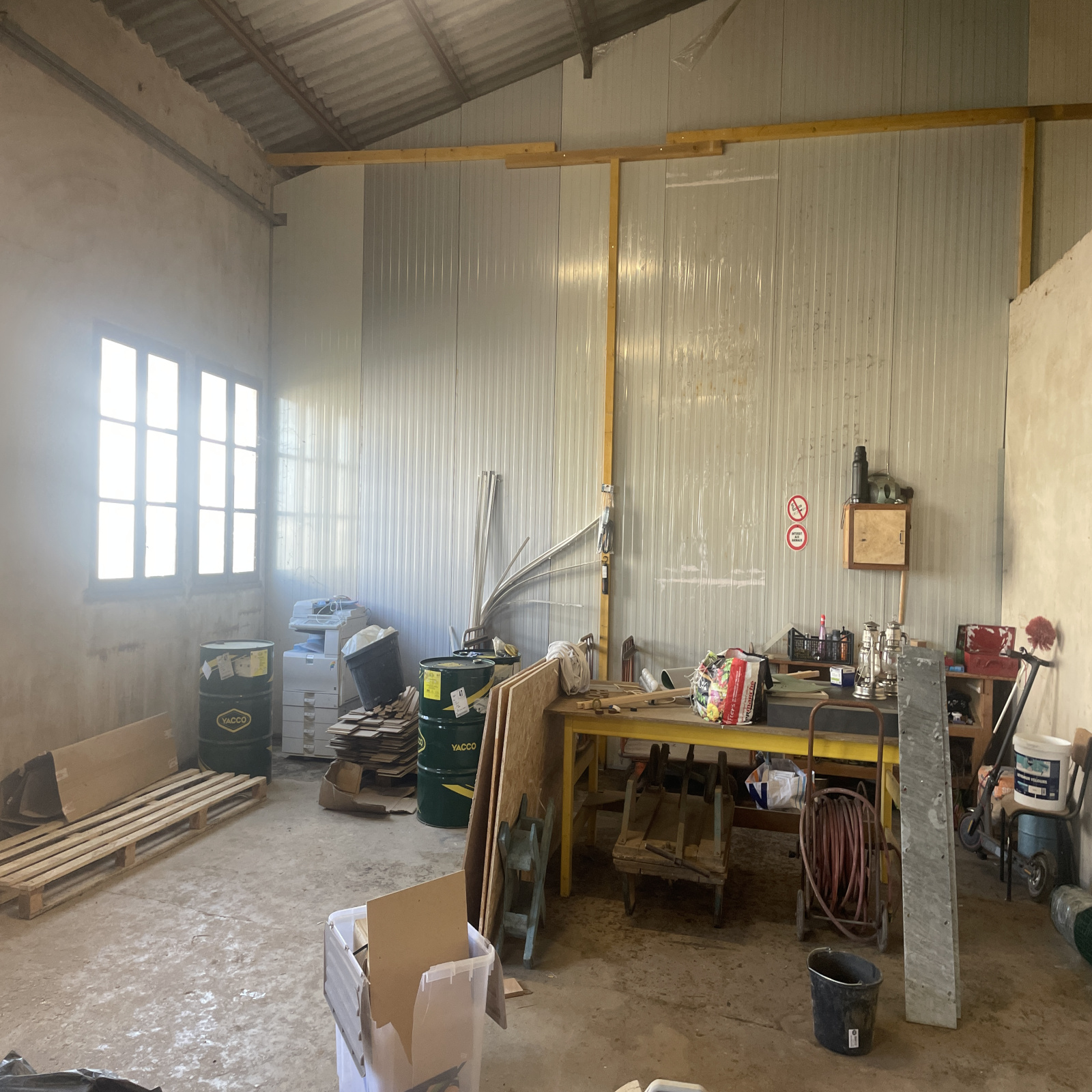 Il est composé d'un bureau de 100m² avec sanitaires , un hangar de 550m² avec un pont ciseau pour mécanique, renové avec caméra, 3000m² de parking, electricité refaite sur un terrain de 3900m² cloturé.