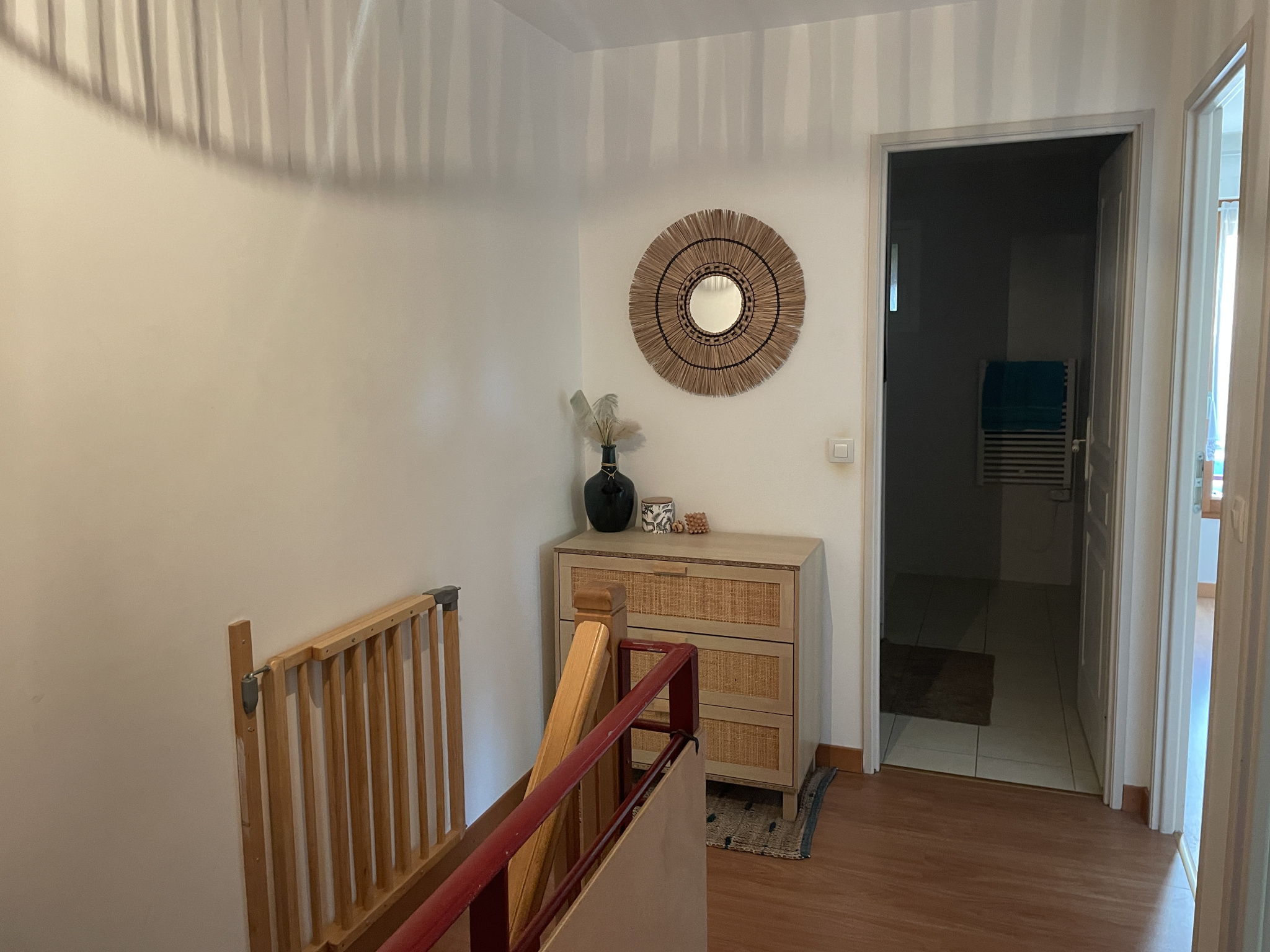 Elle est composée d'une pièce à vivre avec sa cuisine equipée , un cellier. A l'étage un palier desservant 3 chambres, une salle d'eau, un WC. Vous serez sous le charme !!!! au calme.
