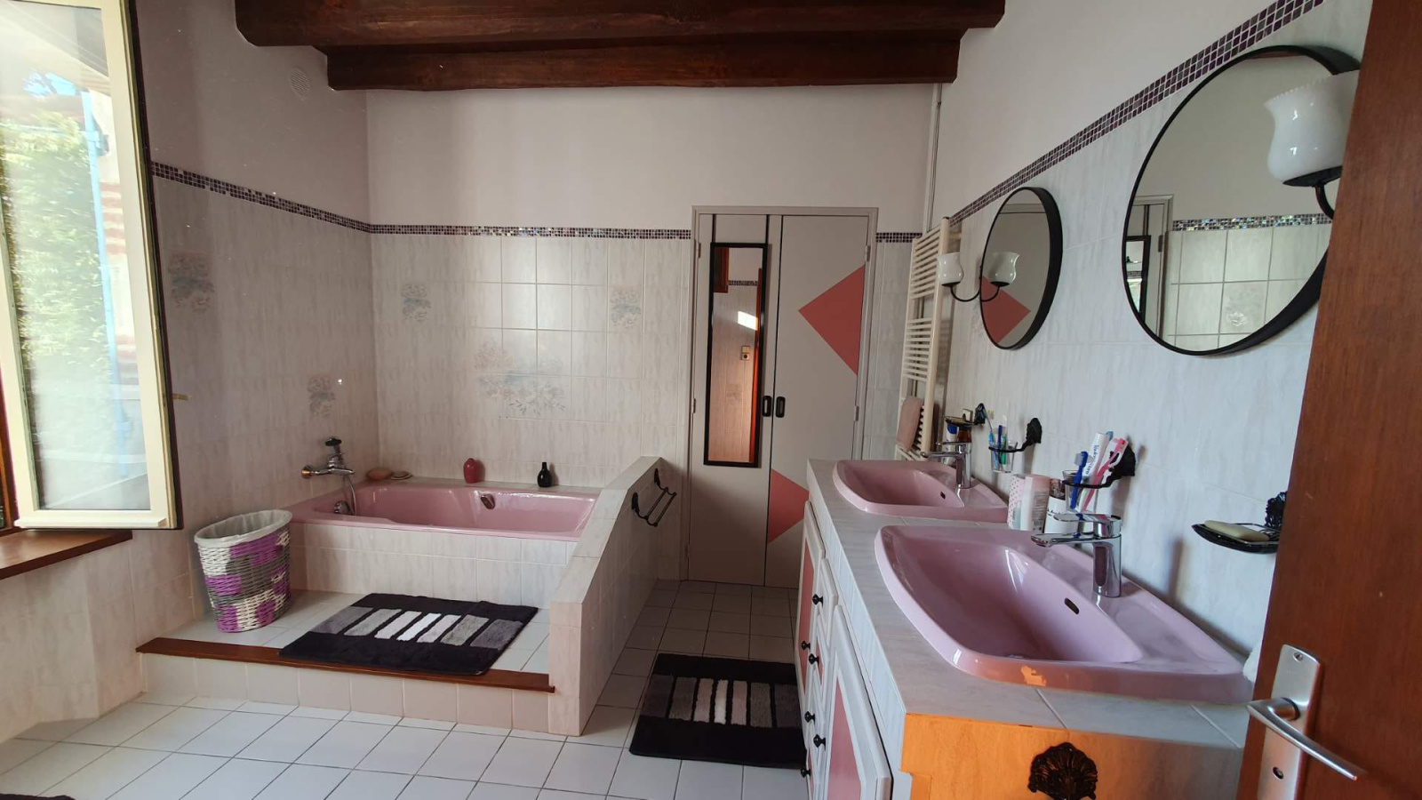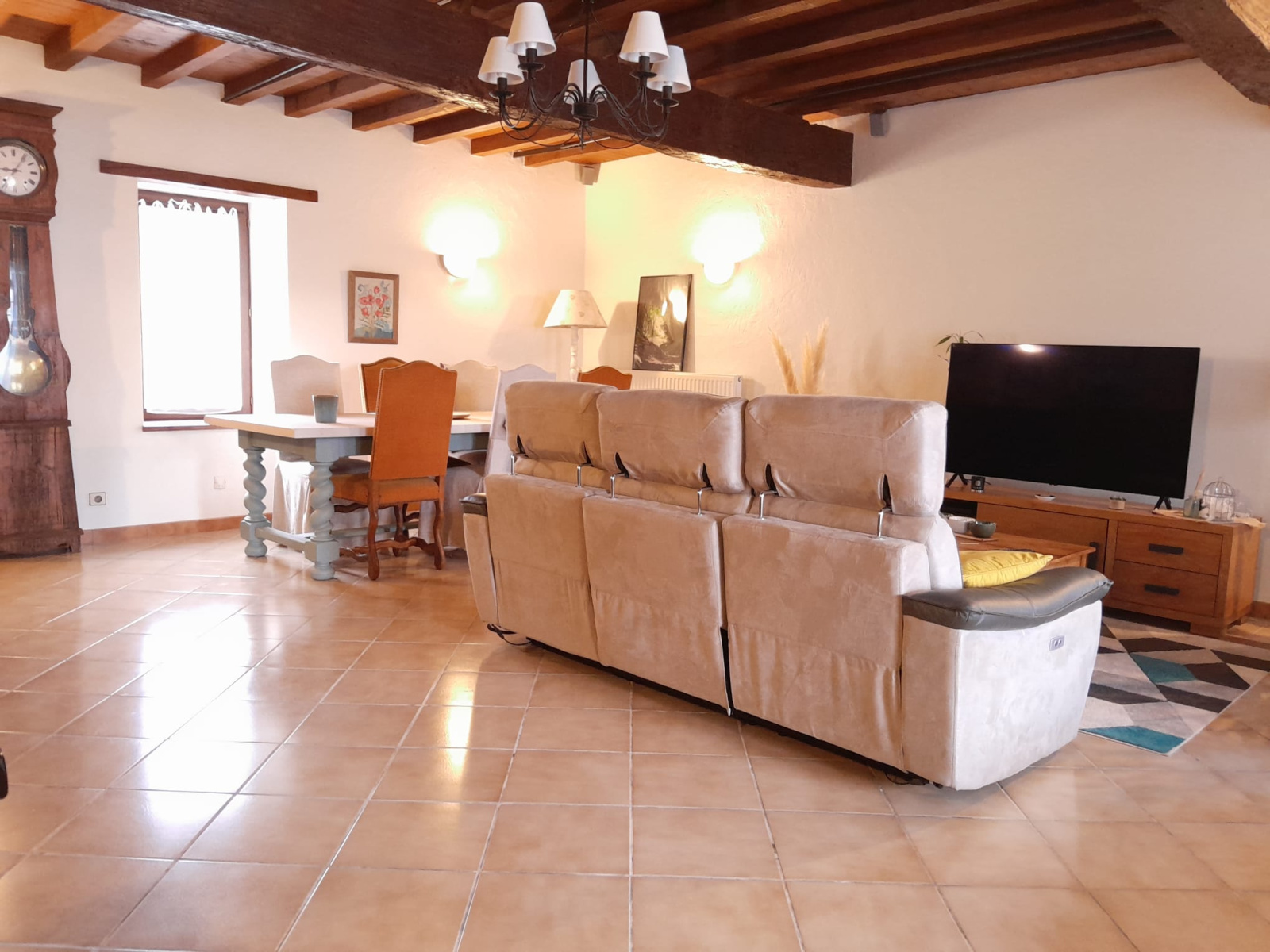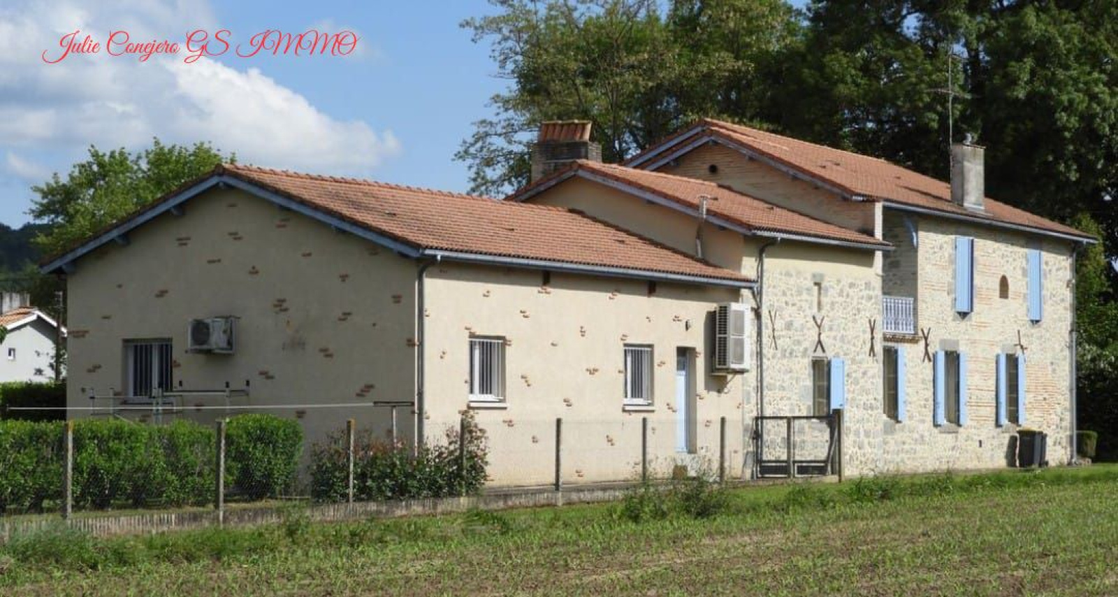 Elle se compose d'une cuisine americaine toute equipée avec insert cheminé,un sejour très lumineux avec accès à la terrasse couverte,d'une salle de bain mixte,WC séparé,un bureau,une buanderie et 4 chambres spacieuses.
