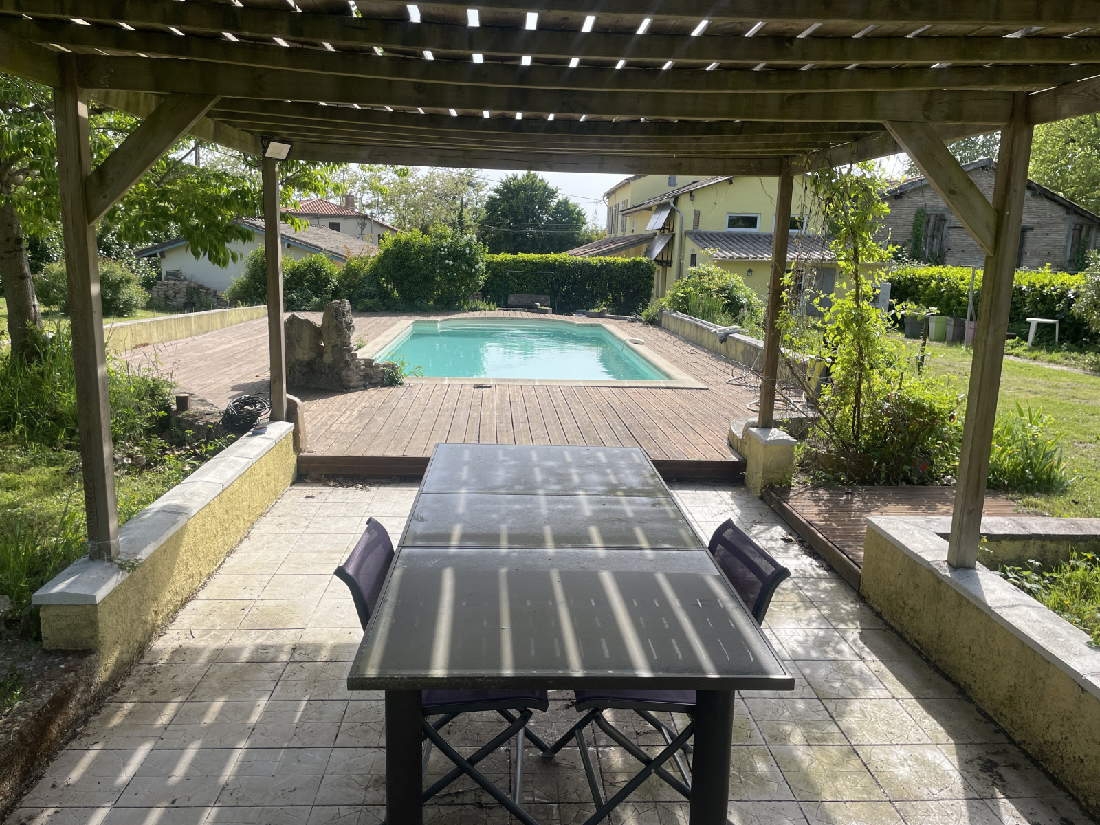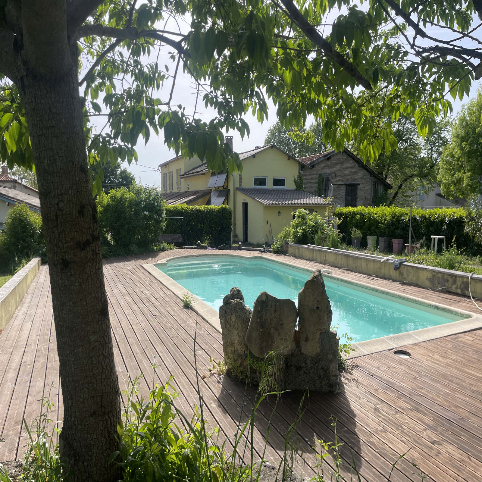 GRANDE MAISON EN PIERRE , composée d'une entrée, une cuisine, un grand salon-séjour , un WC, un cellier, une arrière cuisine. A l'étage un palier desservant 4 chambres , 2 salle d'eau avec 2 WC. Un double garage sur un parc arboré de 2900m² avec sa piscine. Vous serez sous le charme !!! DPE en cours de réalisation.
