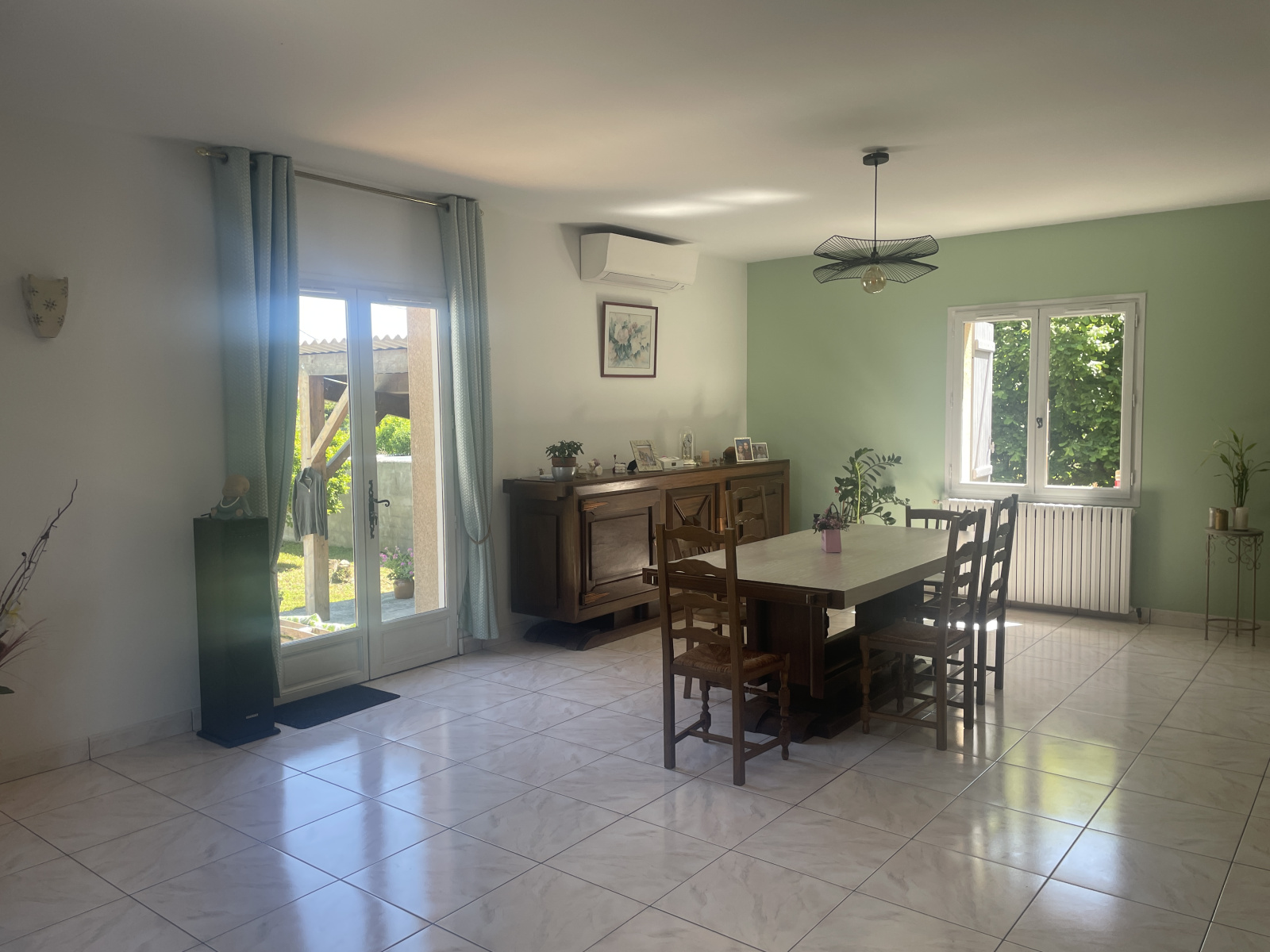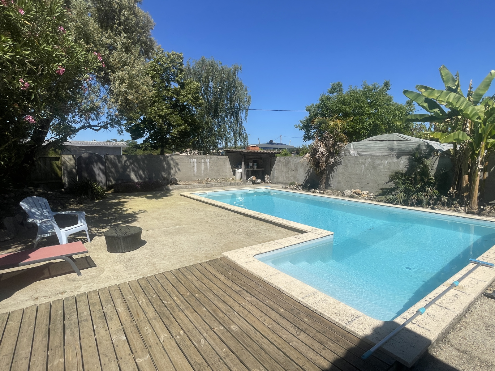 VILLA composée d'une grande pièce de vie de 85m² avec sa cuisine equipée, un salon avec cheminée, une mezzanine de 11m², dégagement desservant 3 chambres, une salle de bains avec une douche, un WC. Un sous-sol de 160m². Sur un jardin arboré de 1000m² avec sa piscine . chauffage gaz de ville, climatisations, double vitrage PVC . Vous serez sous le charme!!!