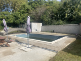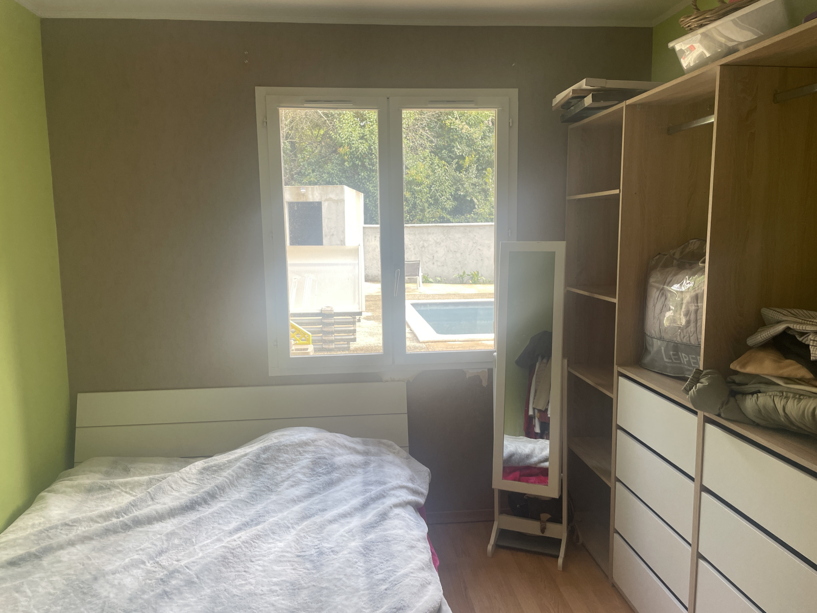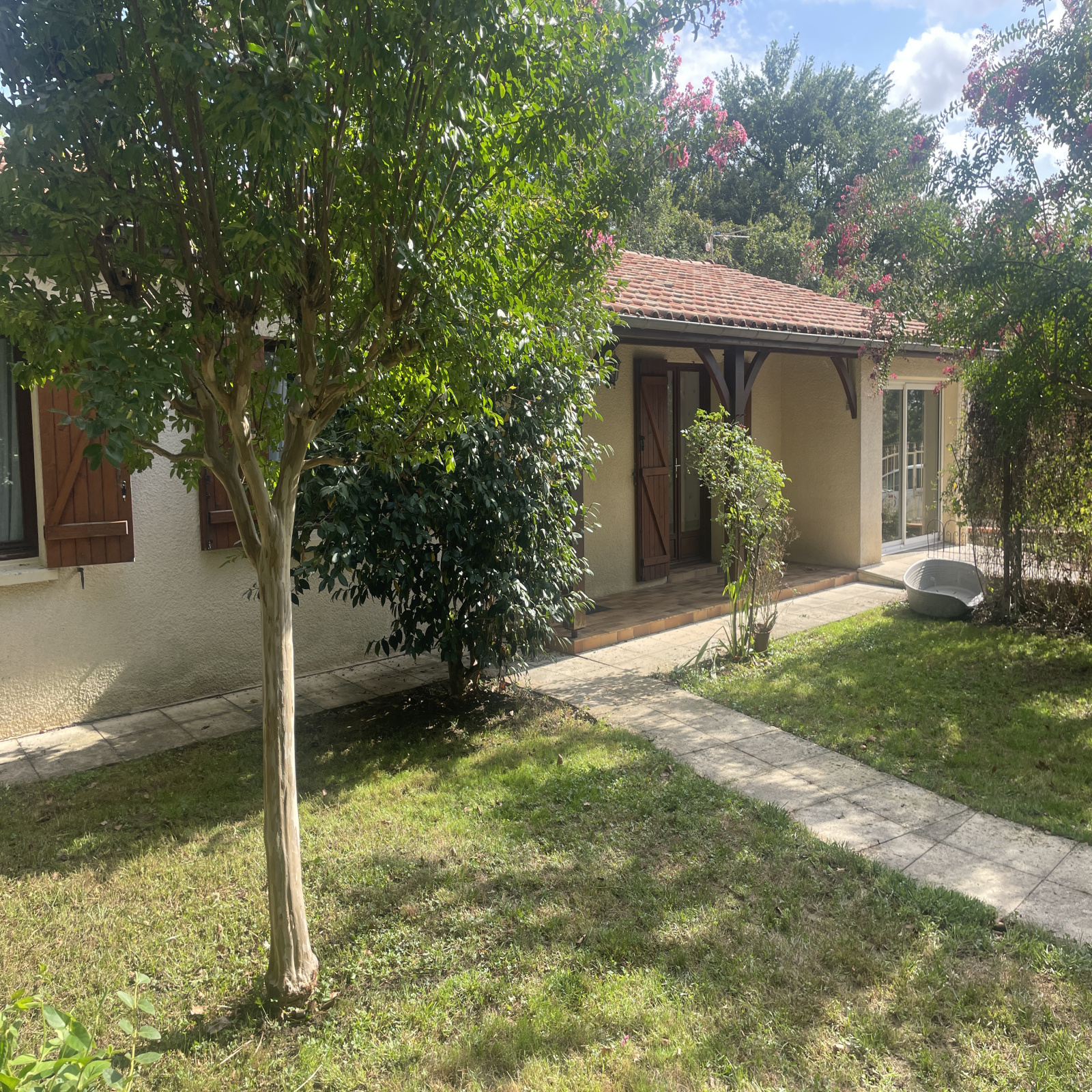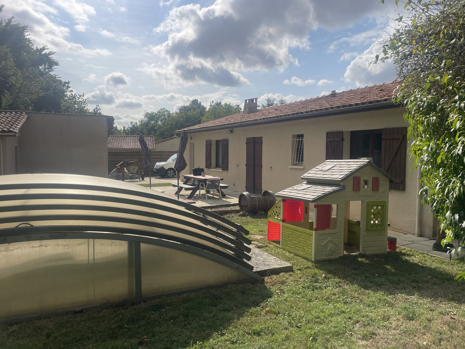 MAISON de plain pied composée d'une entrée sur un salon-séjour, un cellier, une cuisine, dégagement desservant 3 chambres, un WC, une salle de bains avec douche.Sur un jardin arboré et cloturé de 1100m² avec un gard garage et atelier et une piscine avec un abri et un local avec WC. Chauffage climatisation reversible , à 2 mn du centre ville.