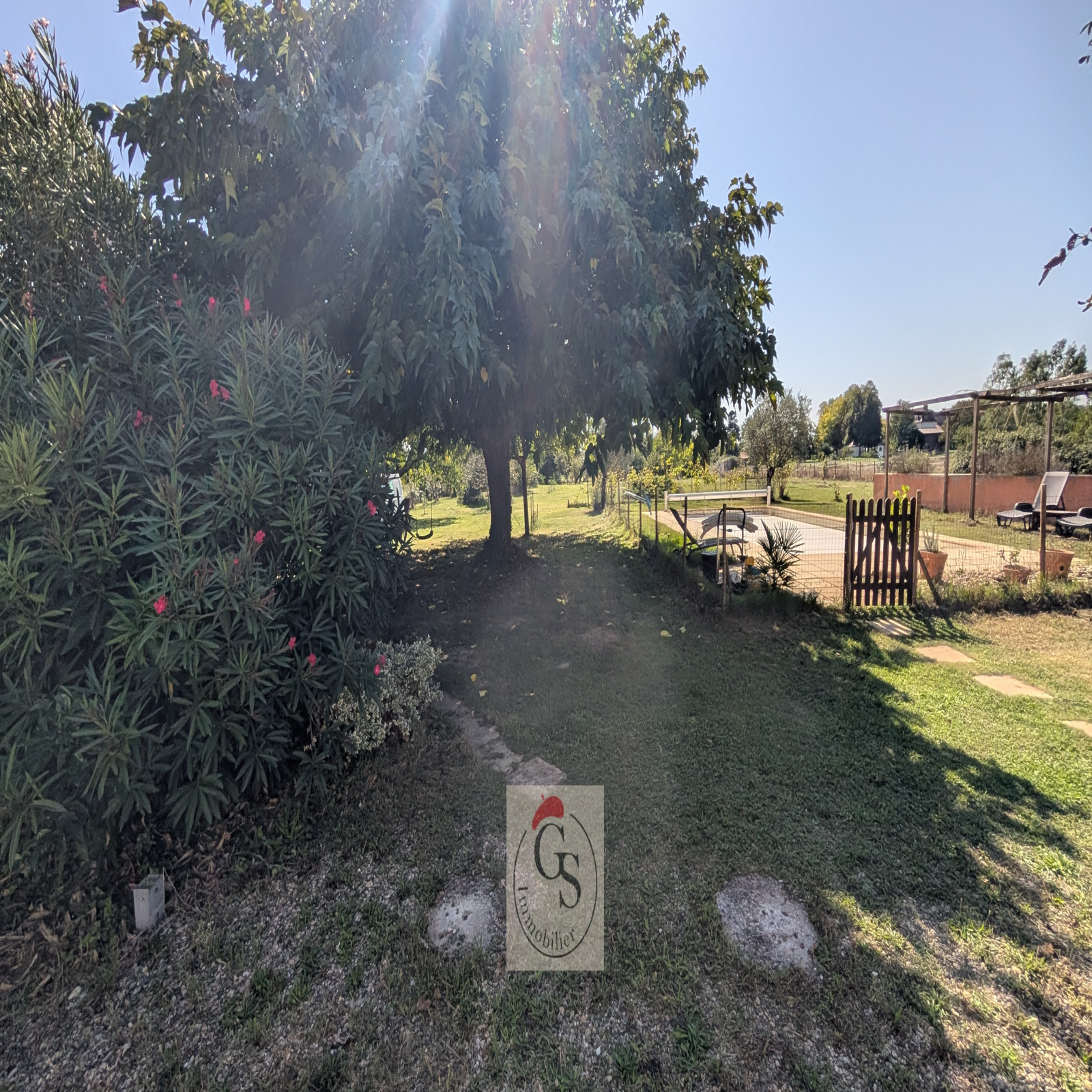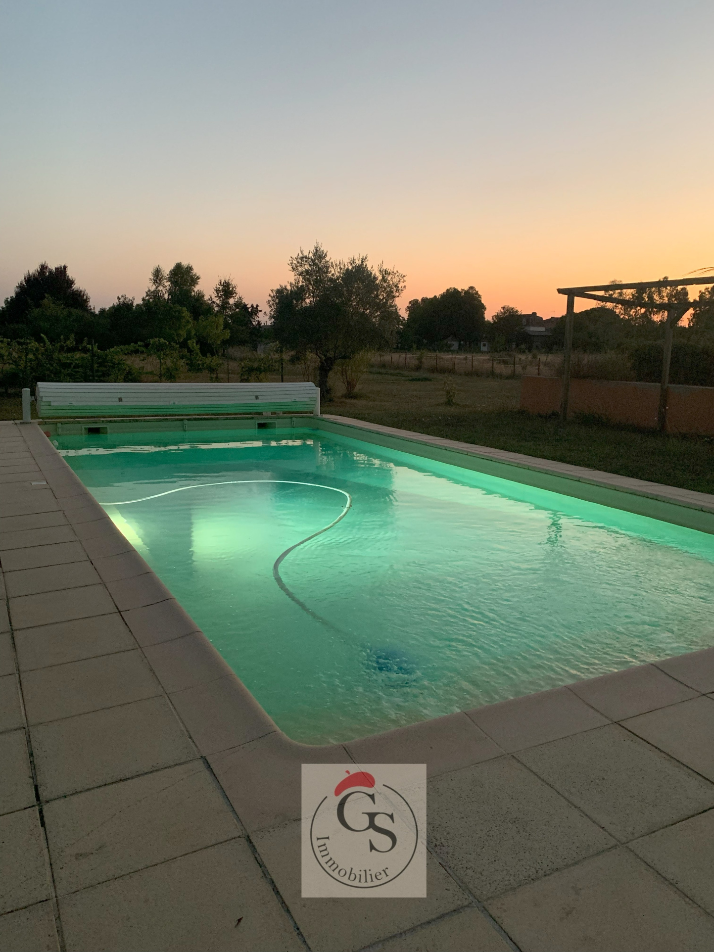 A l'extérieur, 2 terrasses, dont une avec sa pergola donnant sur le jardin, la piscine de 12 X 5 (avec une fosse en pointe de diamant) est au chlore ou au sel. Cet espace promet des moments de détente en famille ou entre amis à l'abri des regards.